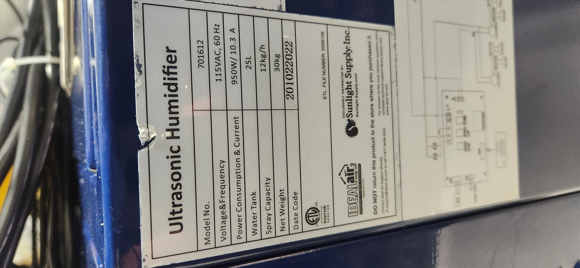 Idealair PRO-600 ultrasonic humidifier, mod. 701612, 25L tank, commercial grade w/ casters [Loc. B4, Vegetative 8]
