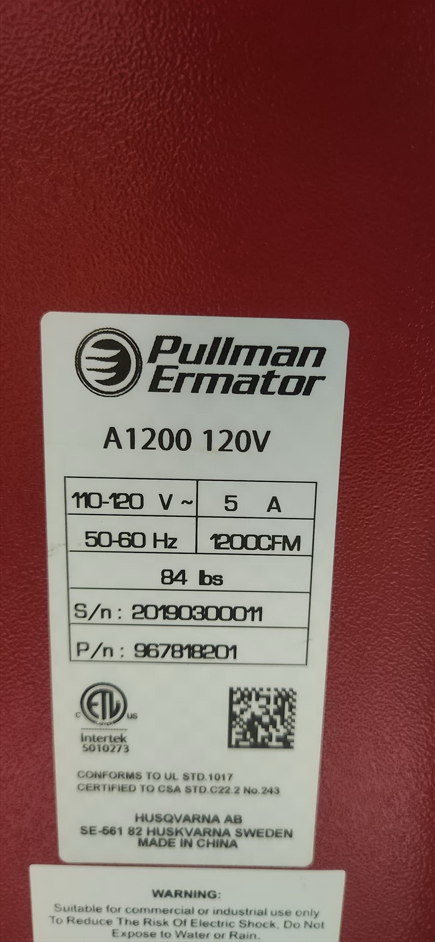Pullman-Holt HEPA air scrubber, mod. A1200 [Loc. B4, Vegetative 8]