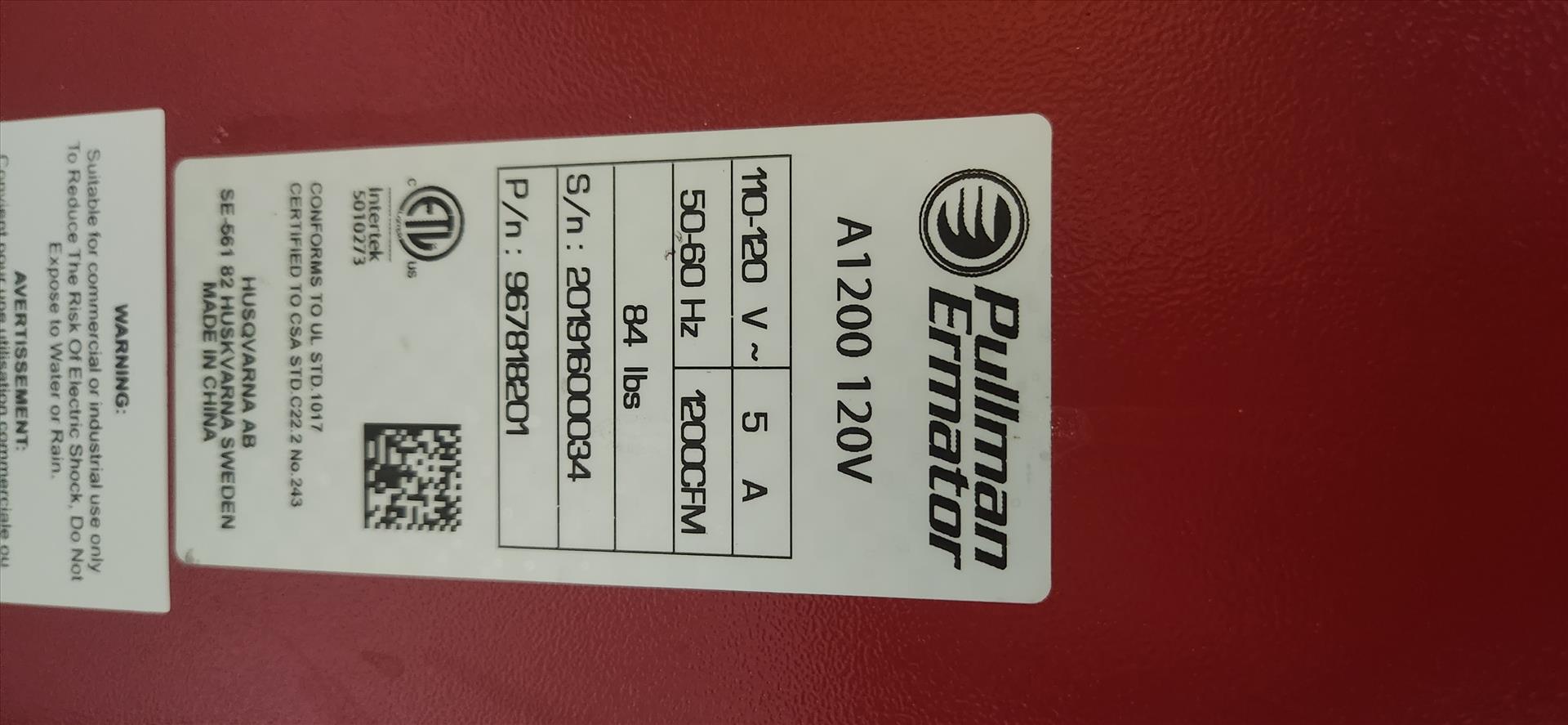 Pullman-Holt HEPA air scrubber, mod. A1200 [Loc. B4, Vegetative 8]