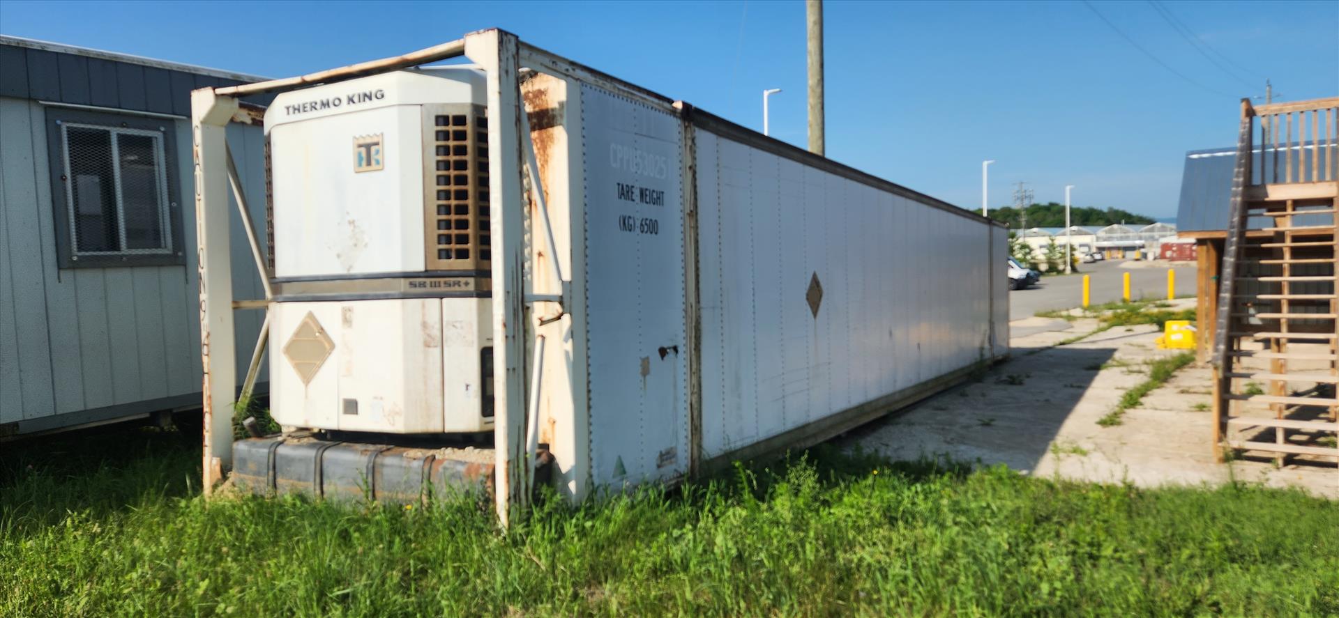 storage trailer, 48 ft., insulated (no wheels) w/ ThermoKing SB-111 SR Plus reefer (may require repair) [Loc. Yard]
