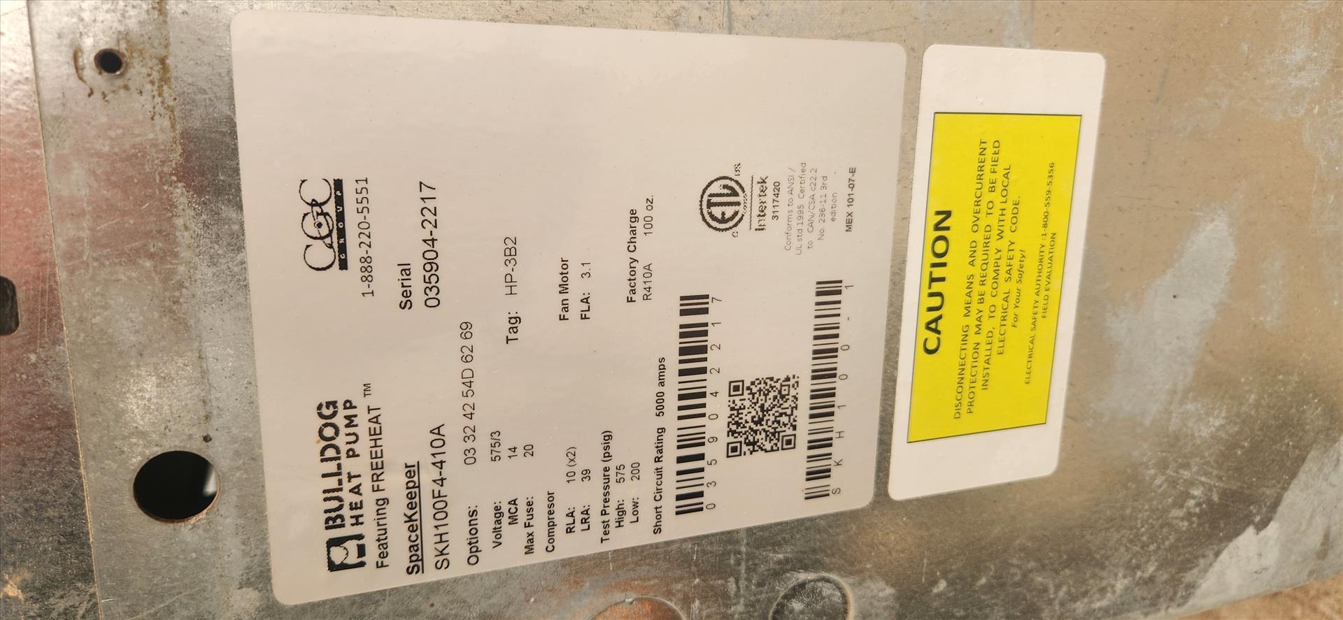 Bulldog heat pump, mod. SKH100F-4-410A, ser. no. 035904-2217 [Loc. Receiving Quonset]