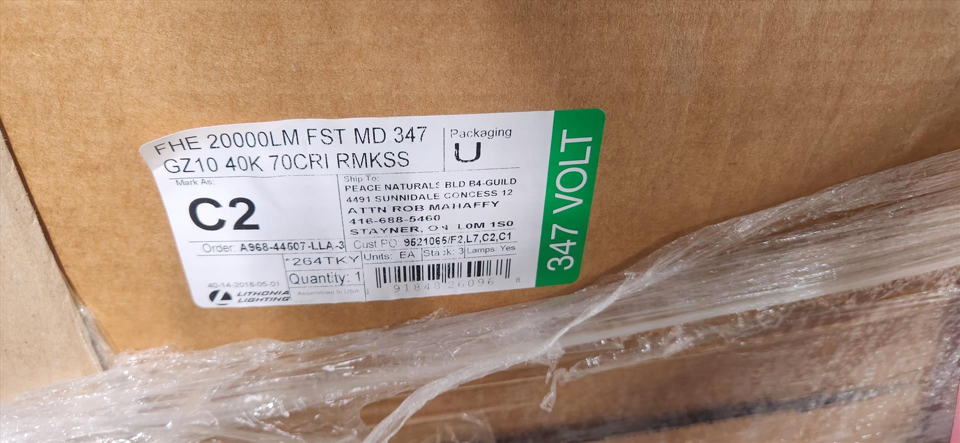 (10) Lithonia ceiling lamps, mod. FHE 2000LM FST 347 GZ10 40K 70CRI RMKSS, NEW [Loc. B5, Greenhouse]