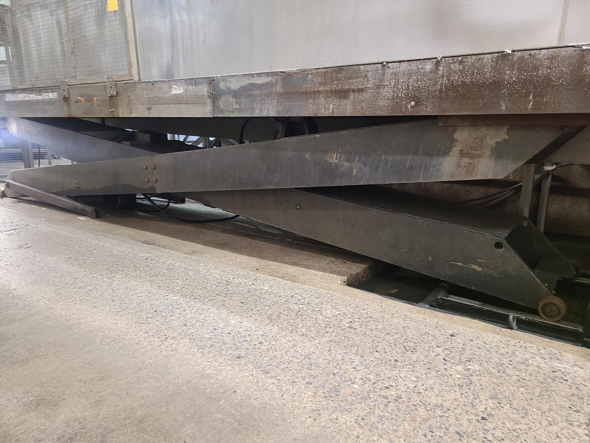 empty tray scissor lift platform, approx. 40 in. x 26 ft. [Loc. Live Rec./Kill]