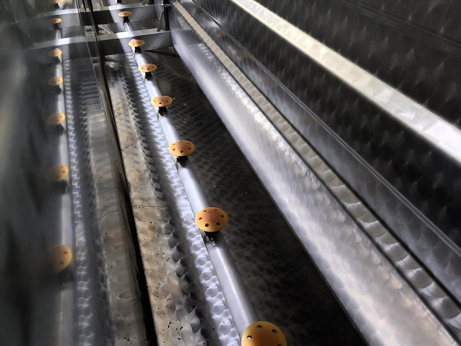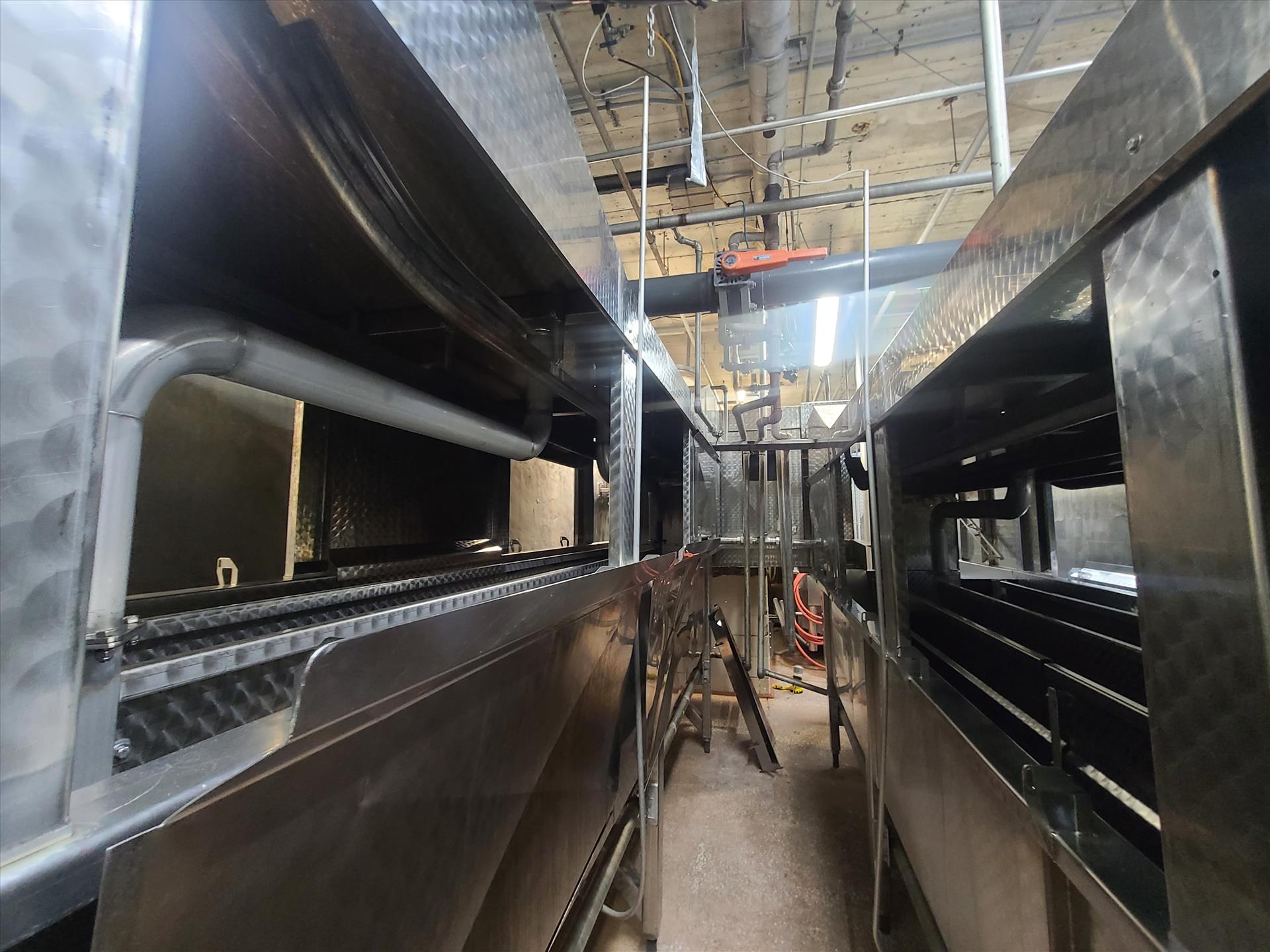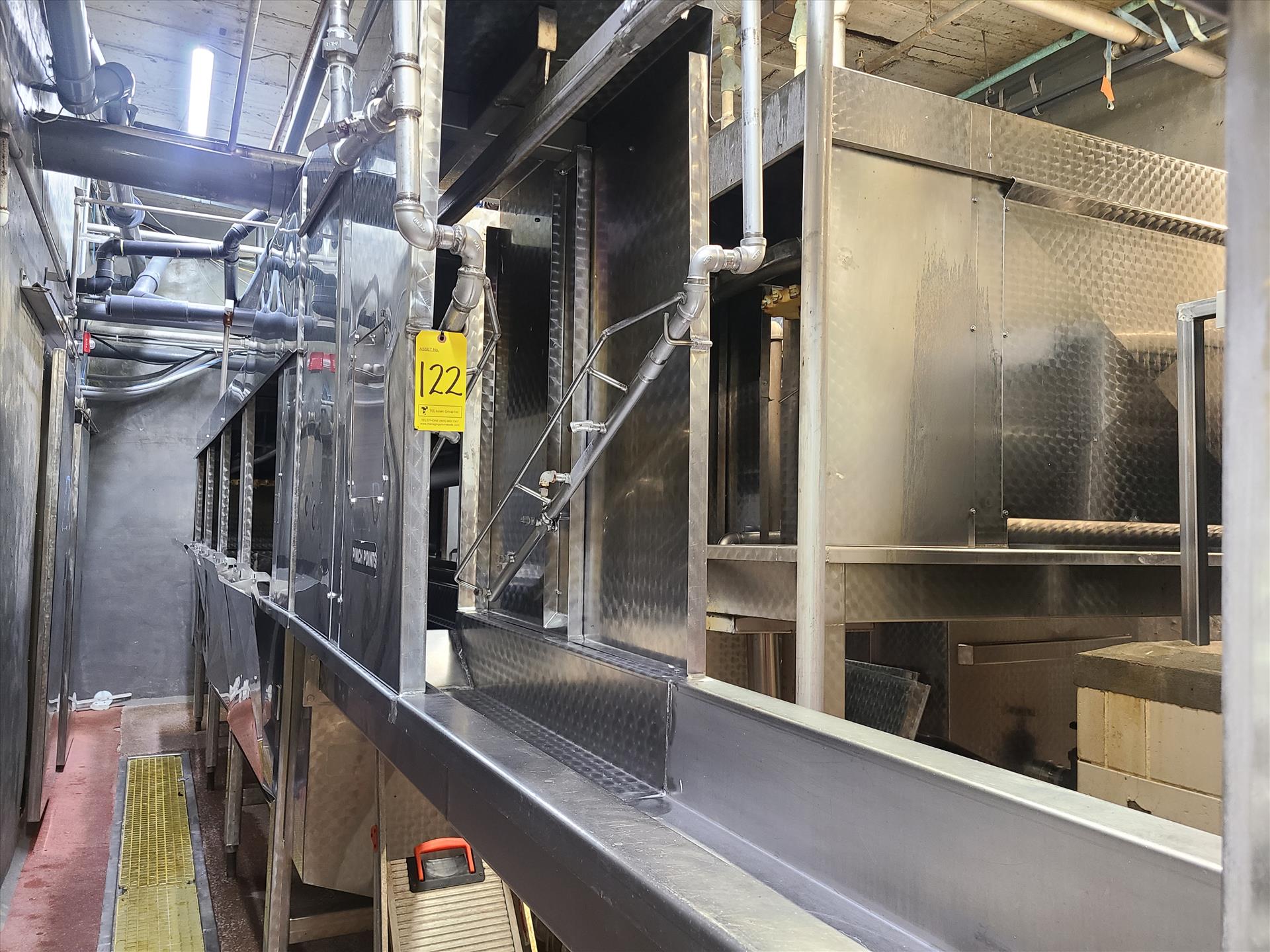 (3 sec.) Lindholt scalder, mod. A12101490006, stainless steel, approx. 64 in. x 24 ft./64 in. x 16 ft./48 in. x 12 ft. [Loc. Defeathering]