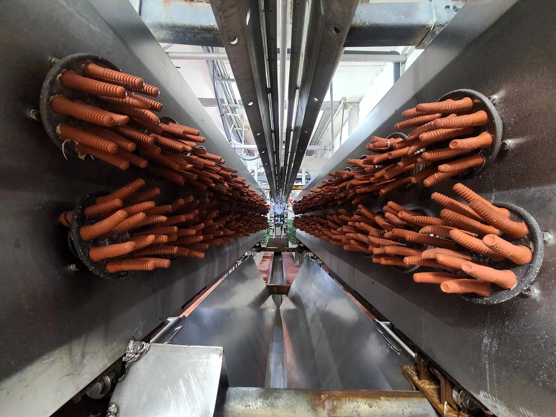Stork feather picker, mod. PickMaster, stainless steel w/ (8) 2 hp motors [Loc. Defeathering]