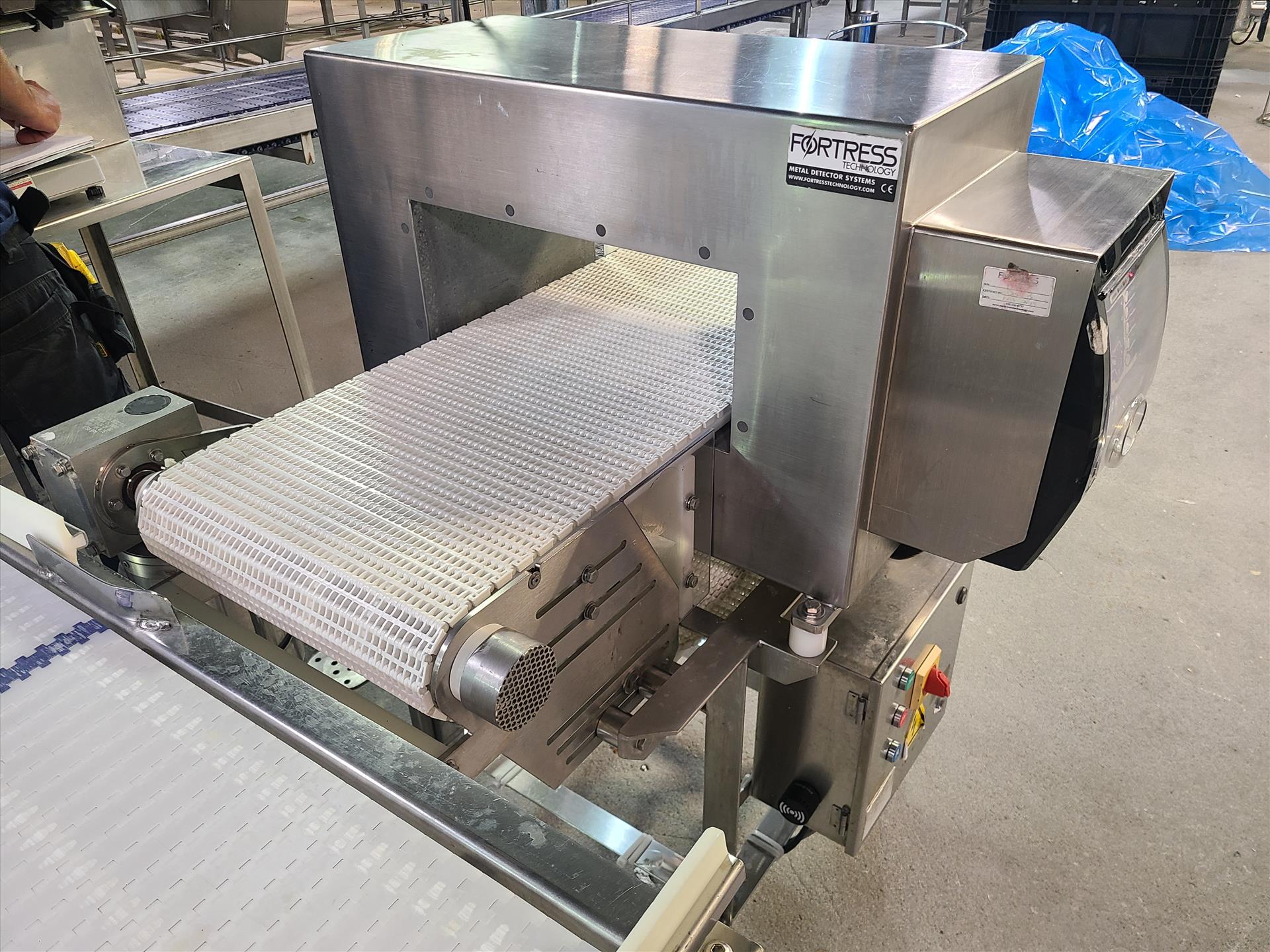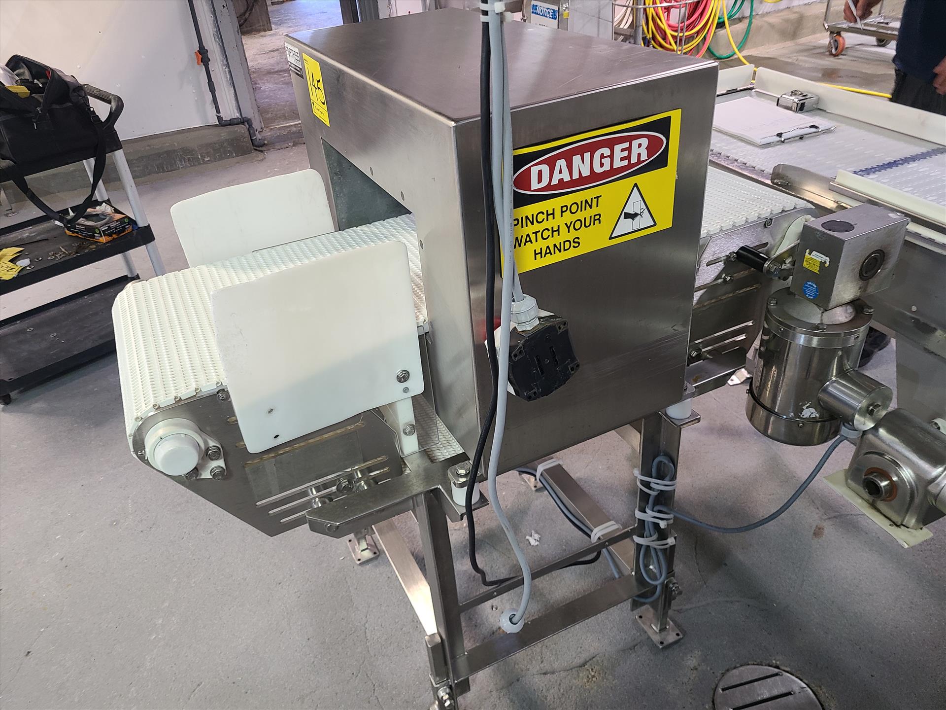 Phantom metal detector, mod. Stealth, 8 in. x 18 in. aperture, approx. 16 in. x 48 in. belt conveyor, stainless steel [Loc. Whole Bird]