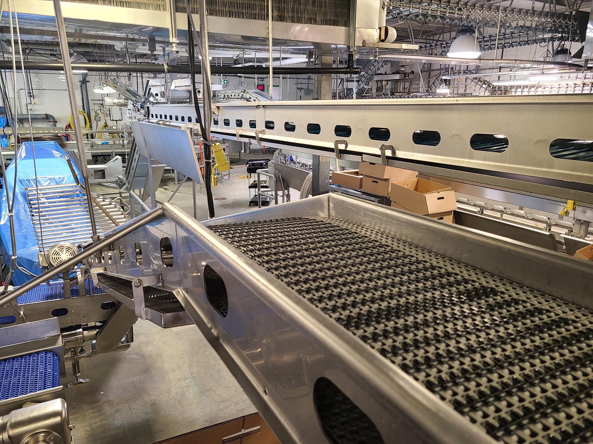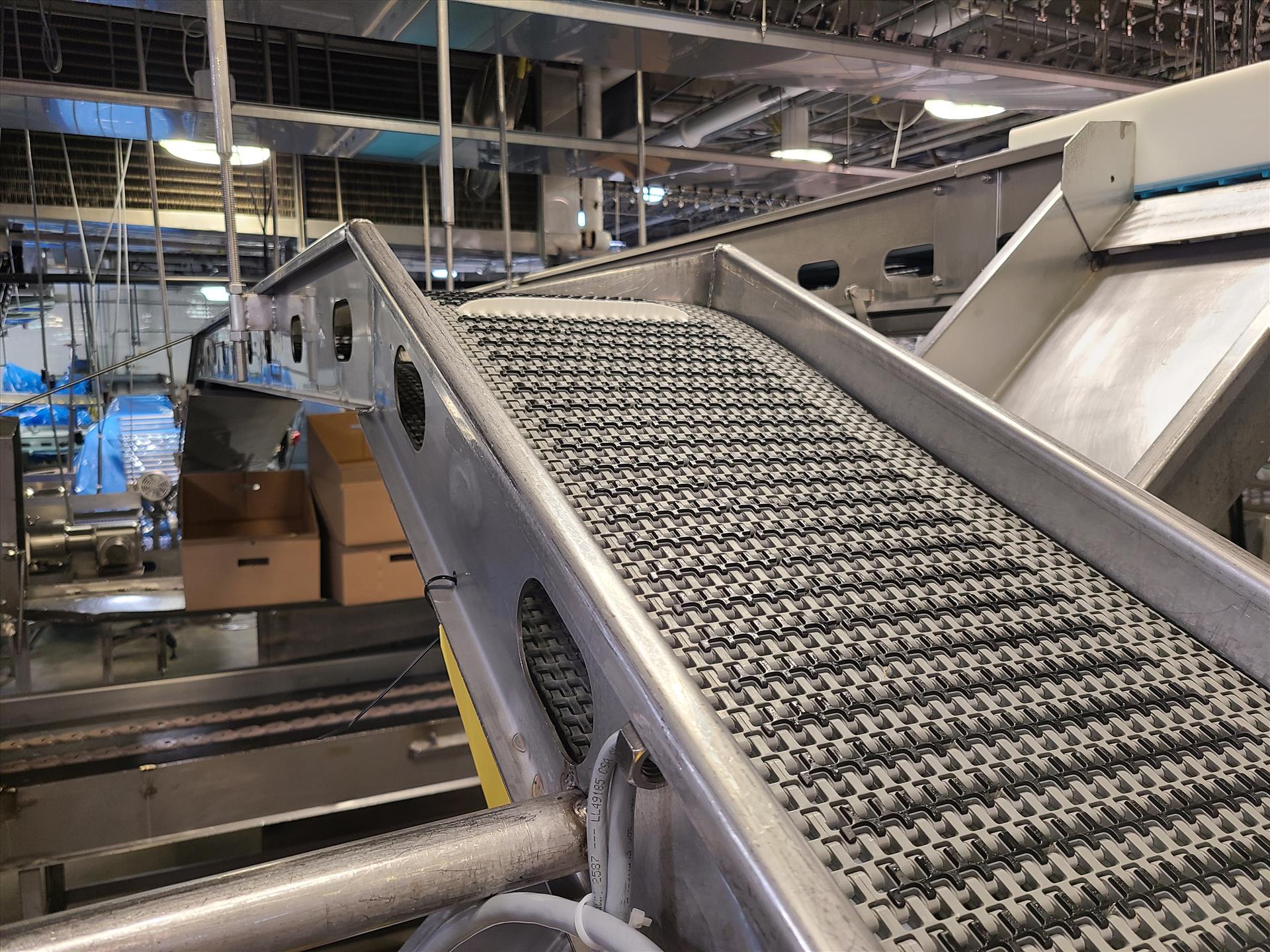 suspended belt conveyor, approx. 12 in. x 33 ft., 0.75 hp wash-down motor, stainless steel [Loc. Cut-Up]