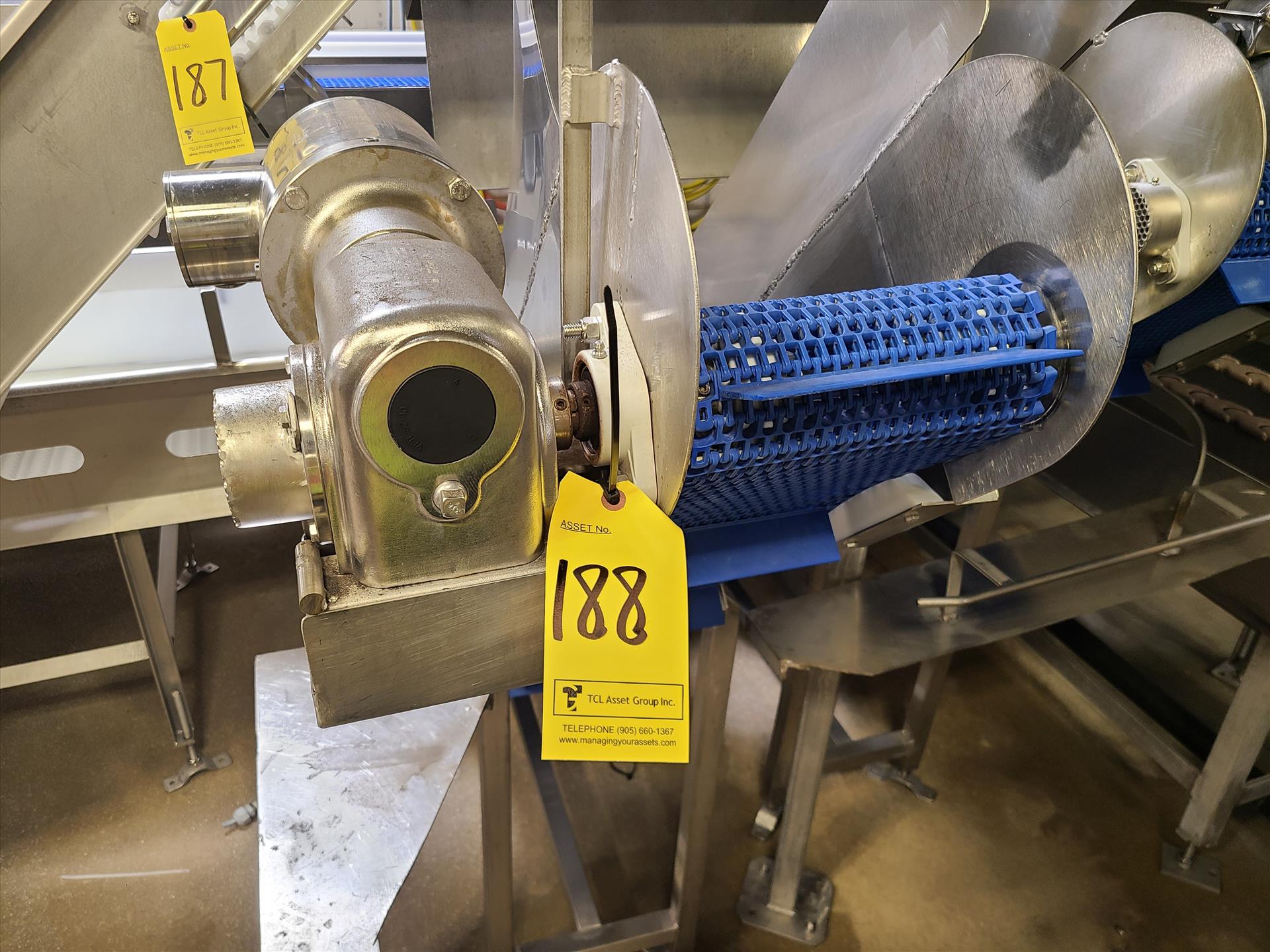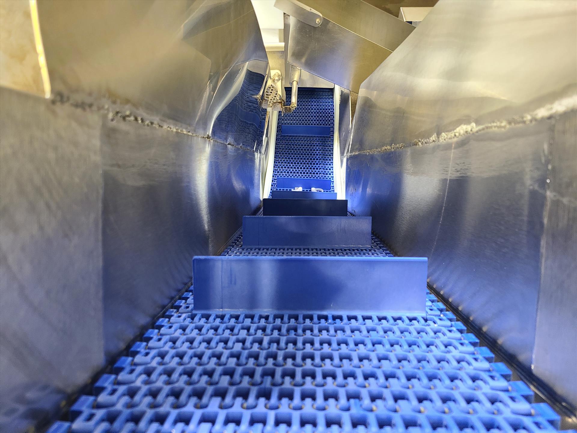 reject inclined fluted belt conveyor, approx. 10 in. x 8 ft. x 60 in. high, 0.75 hp wash-down motor, stainless steel [Loc. Cut-Up]