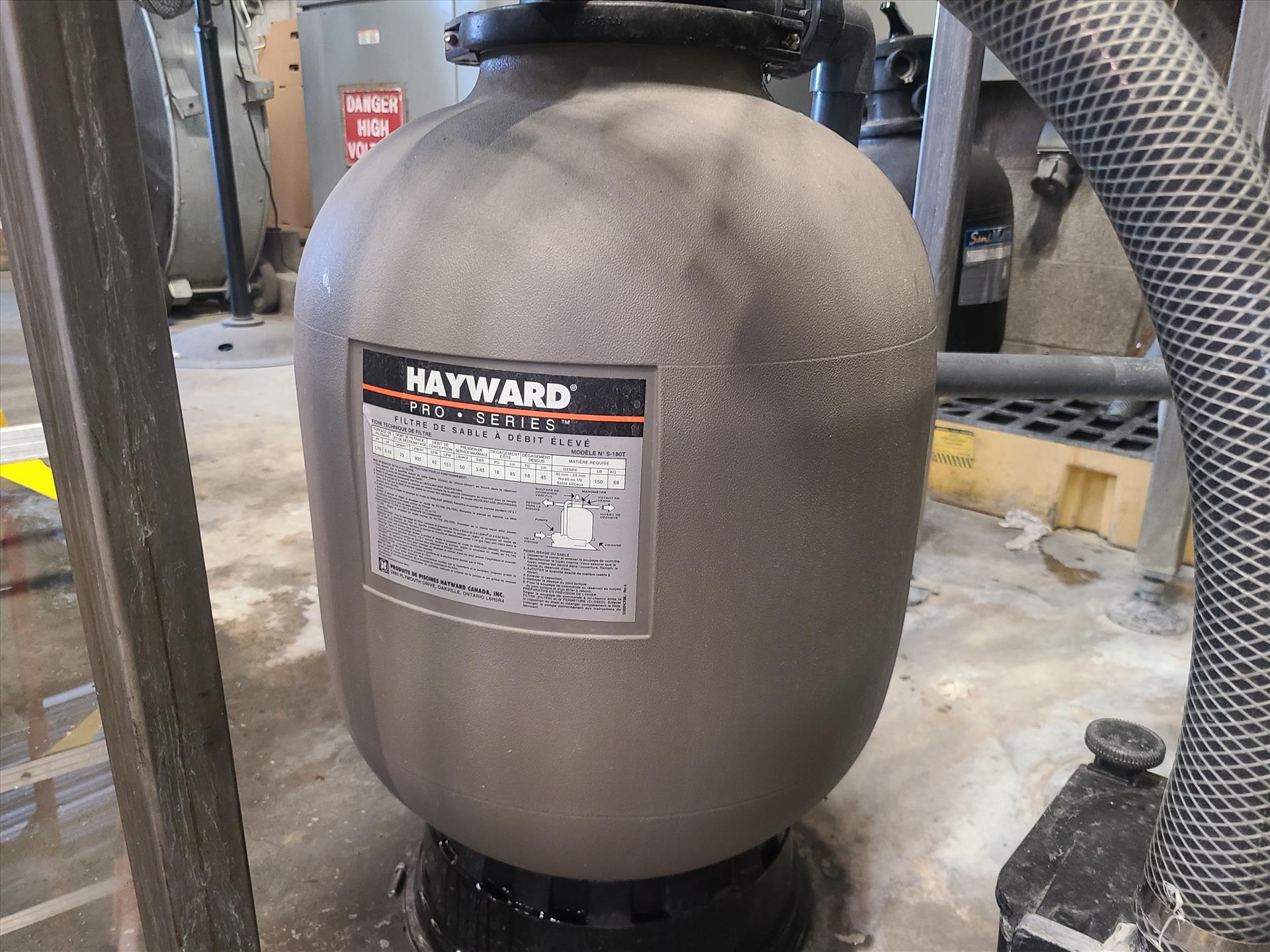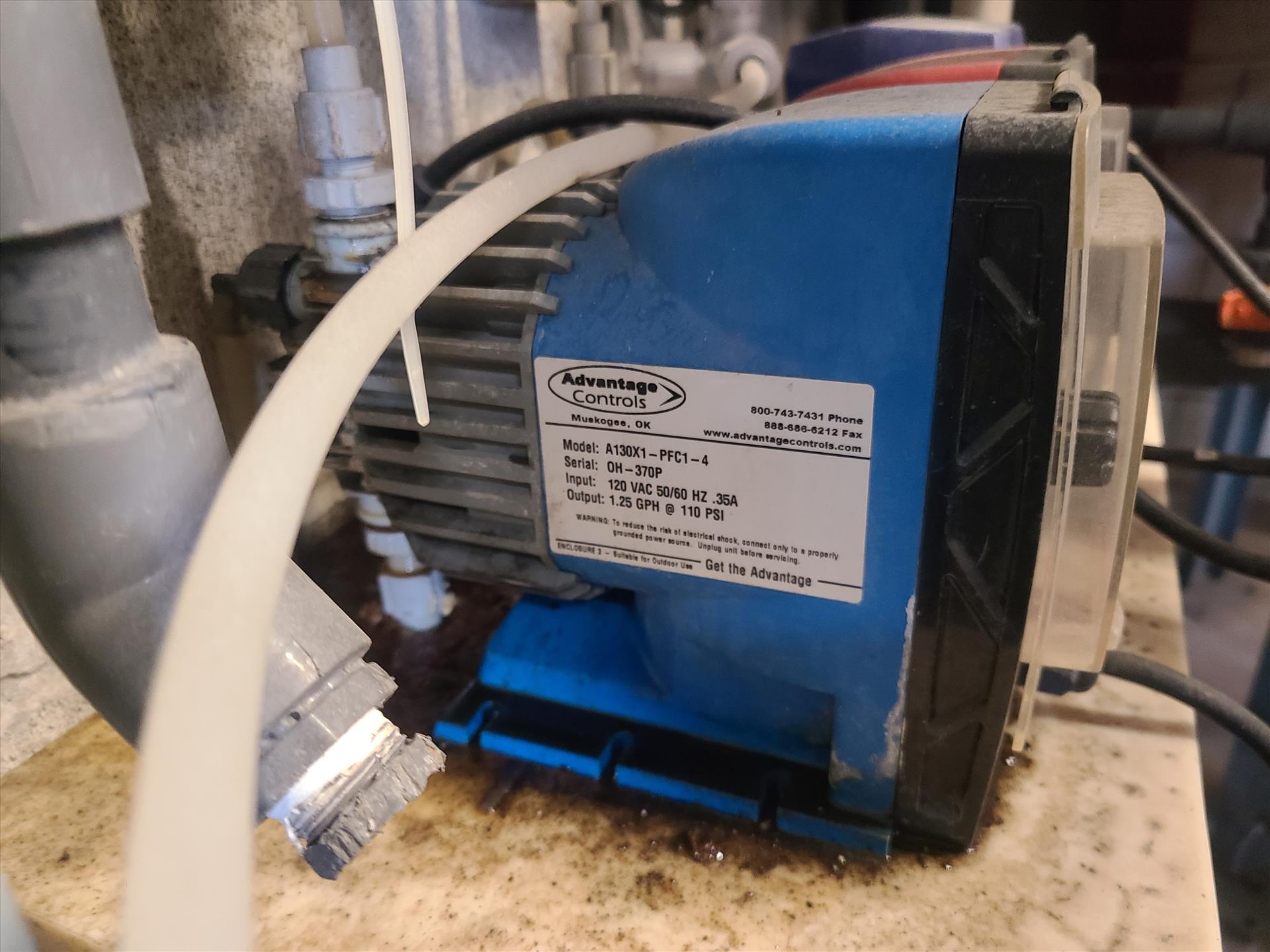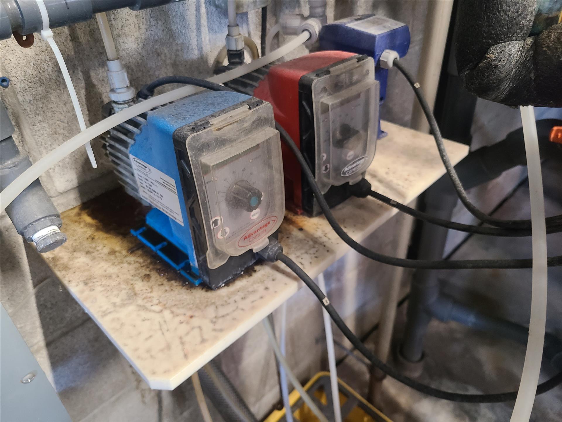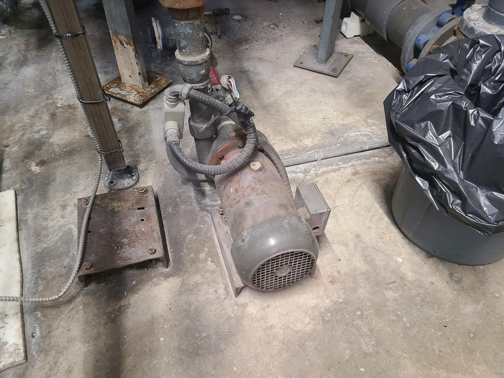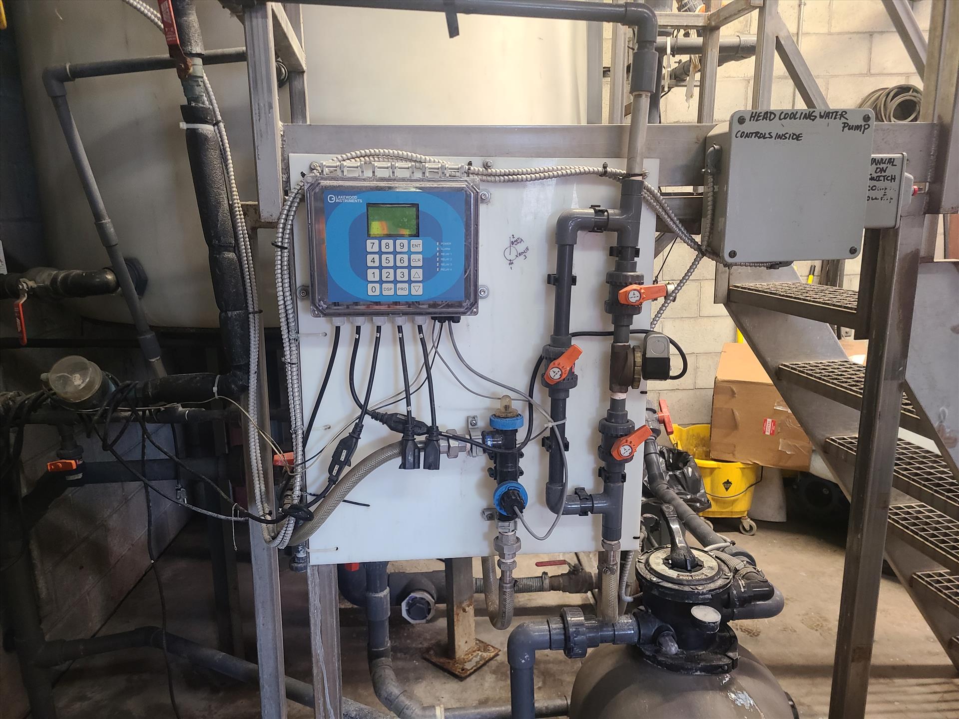 poly tank, approx. 800 gal. c/w pumps and stainless steel work platform, etc. [Loc. Roof]