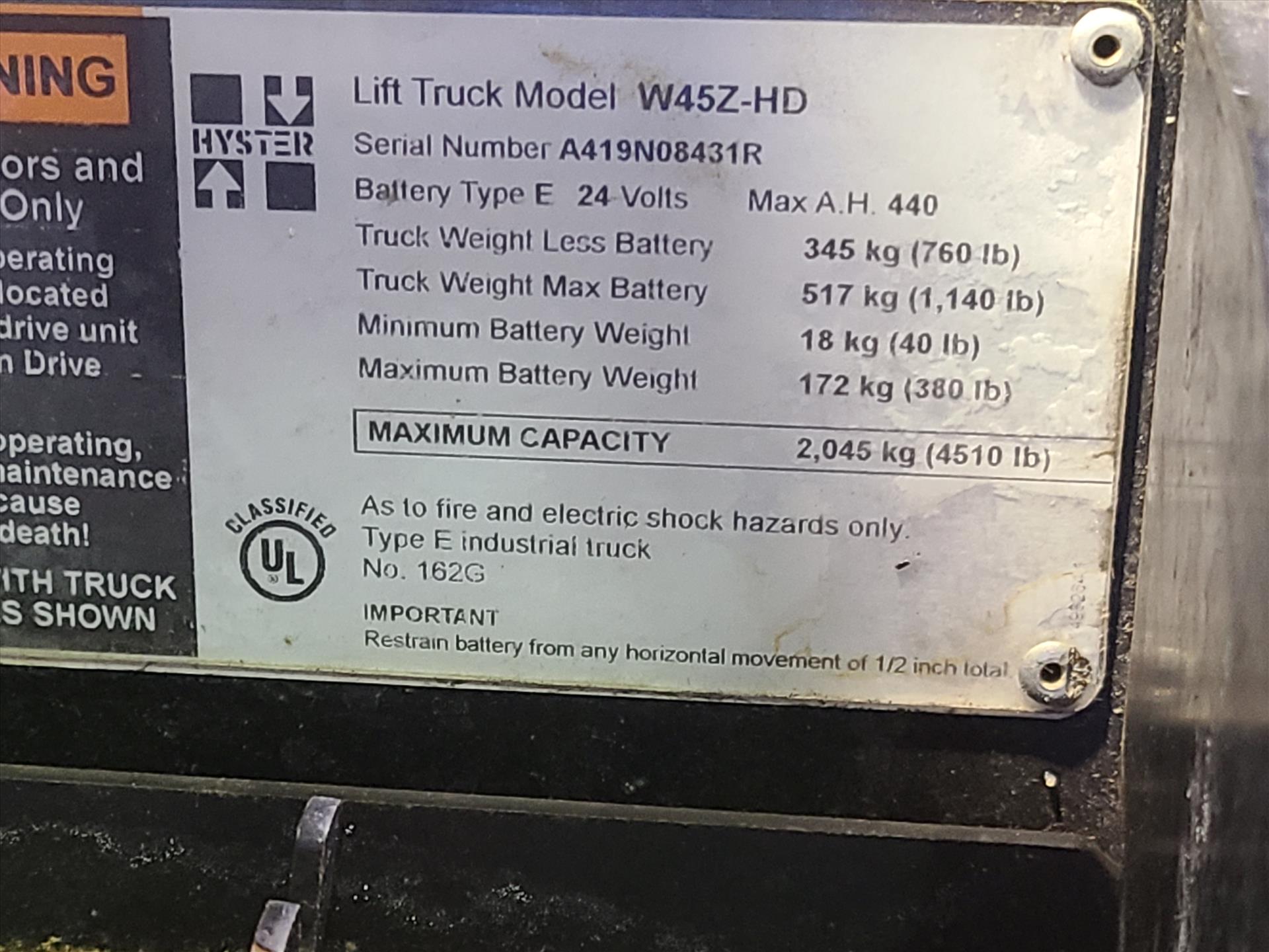 Hyster walk-behind pallet truck, mod. W452-HD, 4500 lbs. cap., integrated charger, I.D. W749 [Loc. Shipping]
