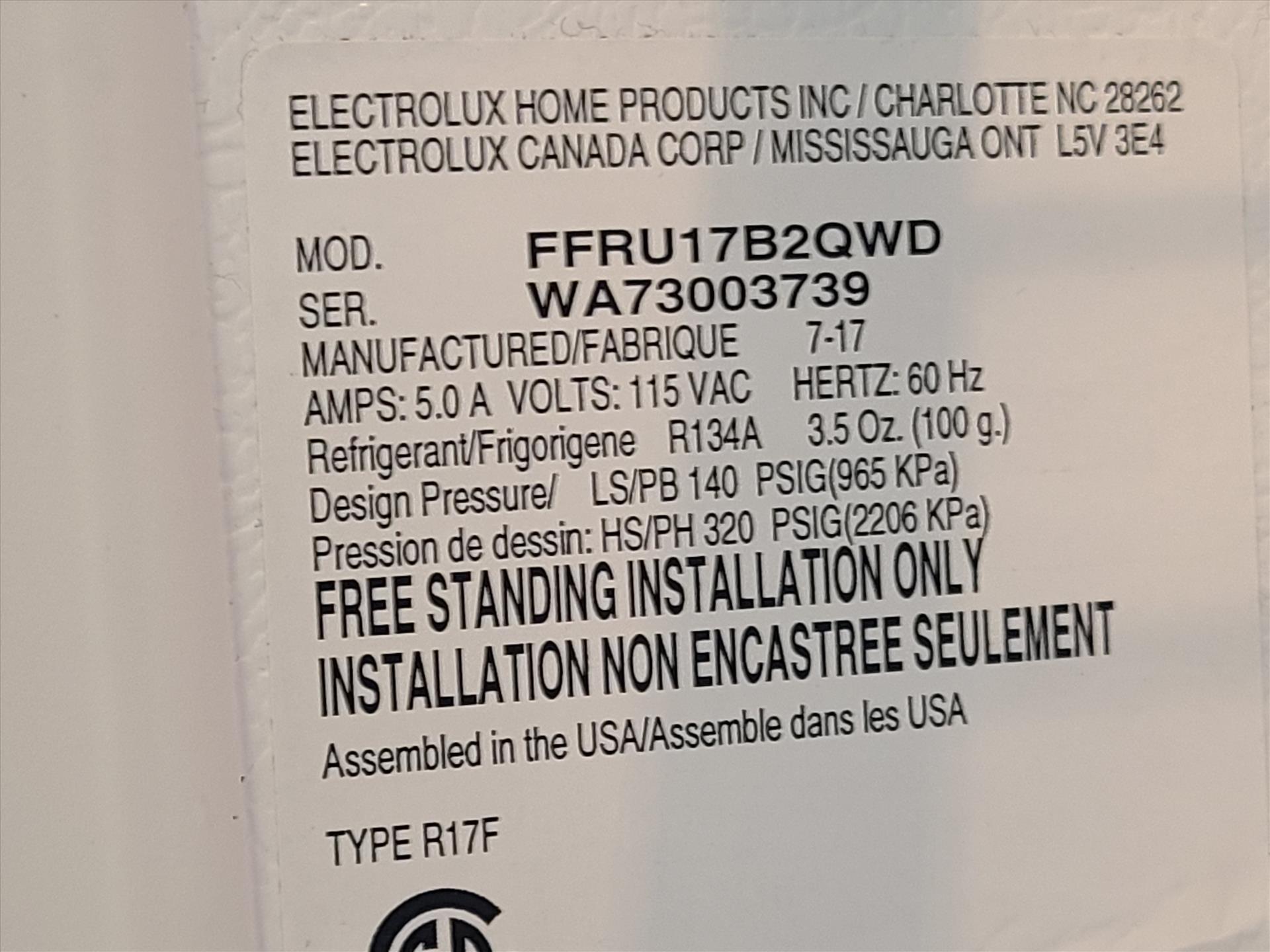 Frigidaire refrigerator [Loc. Cafeteria, 2nd Floor]