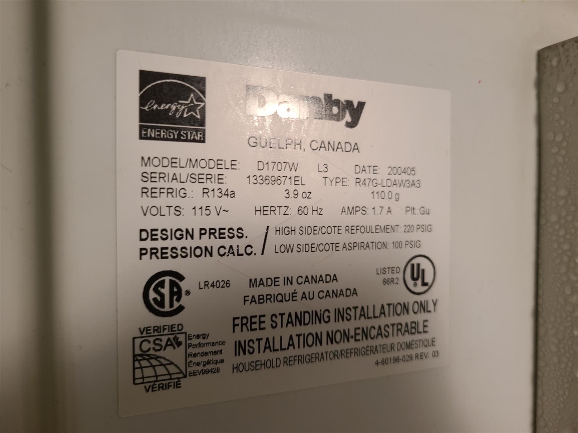 Danby refrigerator [Loc. Offices, 1st Floor]