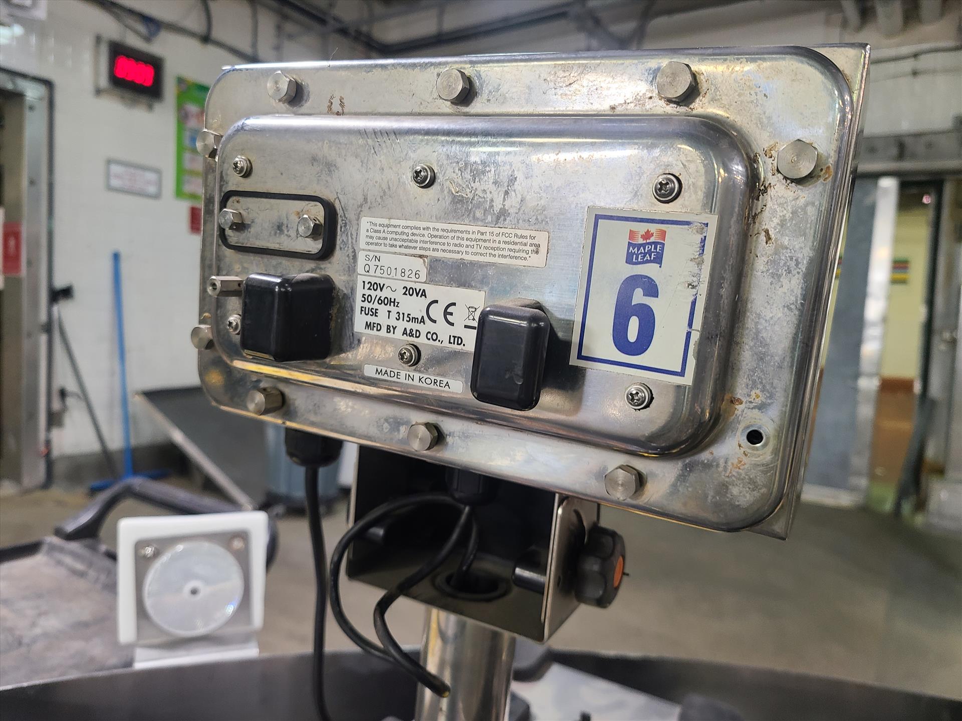 AND digital bench scale, mod. FS-15Ki, 35 lbs. - 0.01 lbs., 9 in. x 9 in. platform, stainless steel [Loc. Cut-Up]
