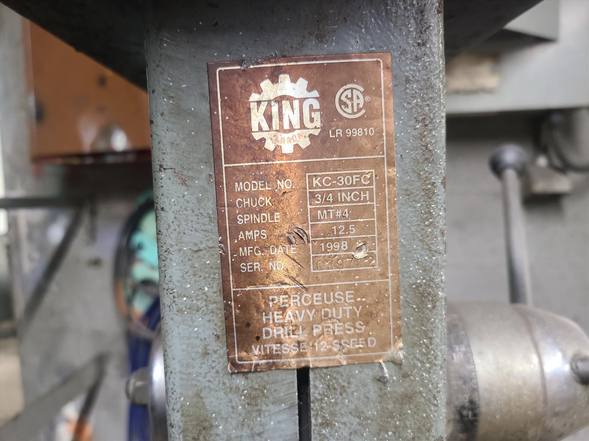 King drill press, mod. KC-30FC, 3/4 in. c/w 4 in. machine vice [Loc. Maint. Shop]