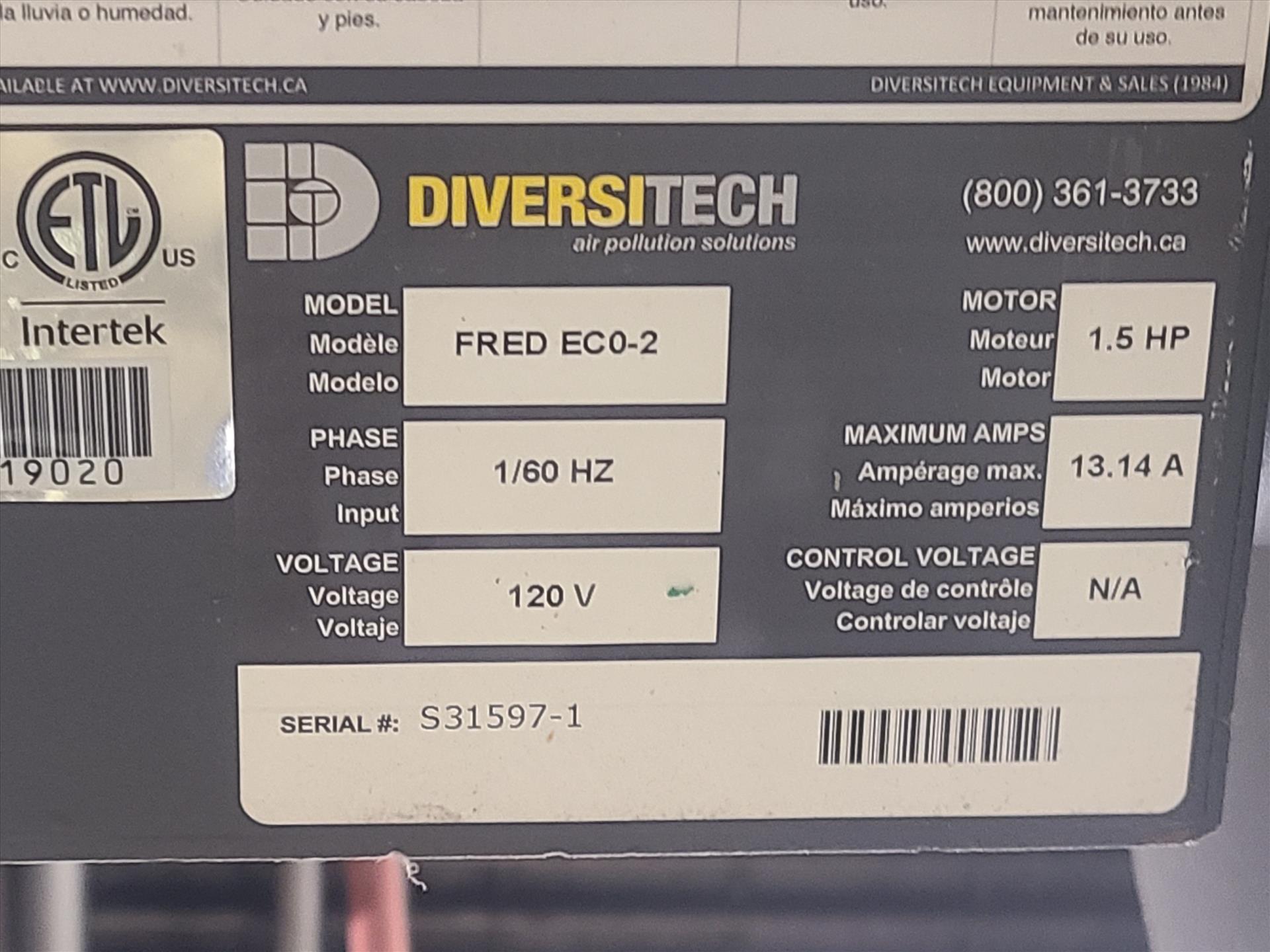 Diversitech fume extractor, mod. FRED ECO-2, ser. no. 531597-1 c/w directional arm [Loc. Maint. Shop]