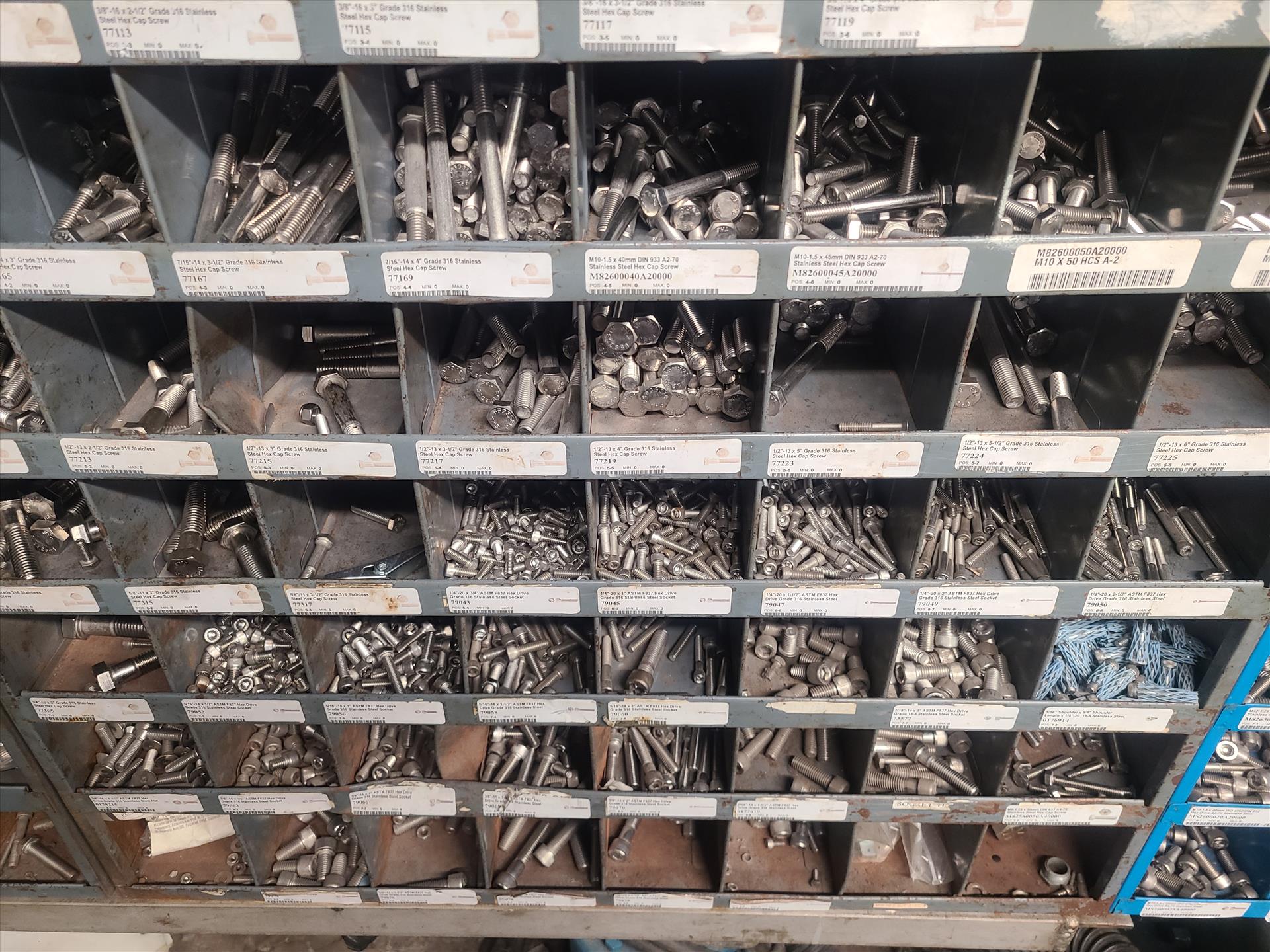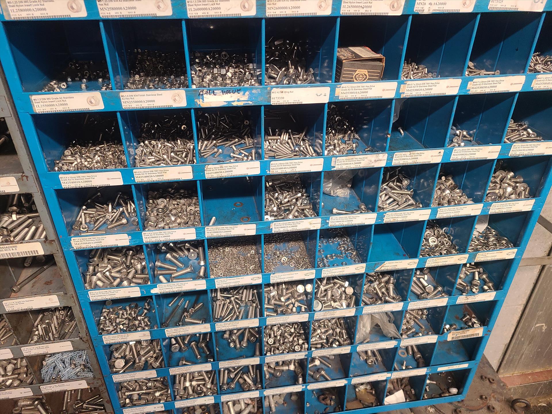 (3) small parts cabinets c/w contents: stainless steel nuts and bolts, etc. [Loc. Maint. Shop]