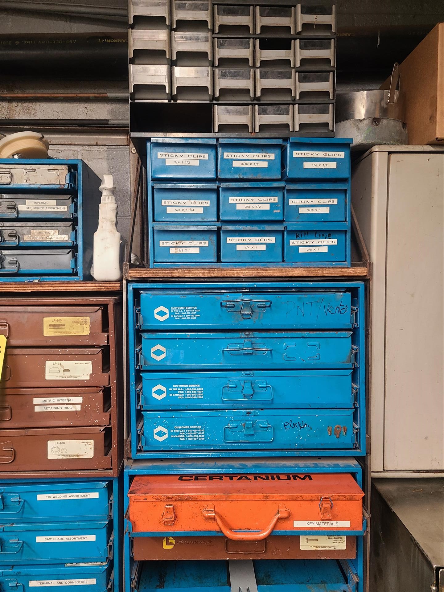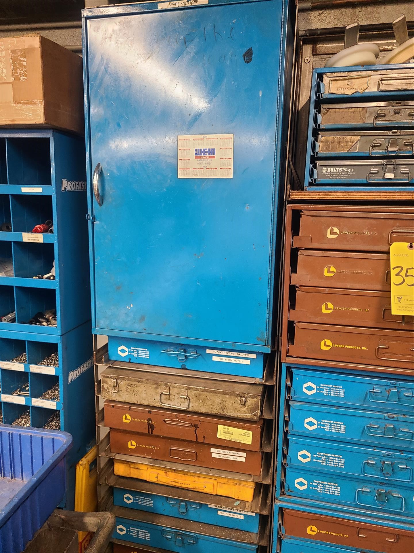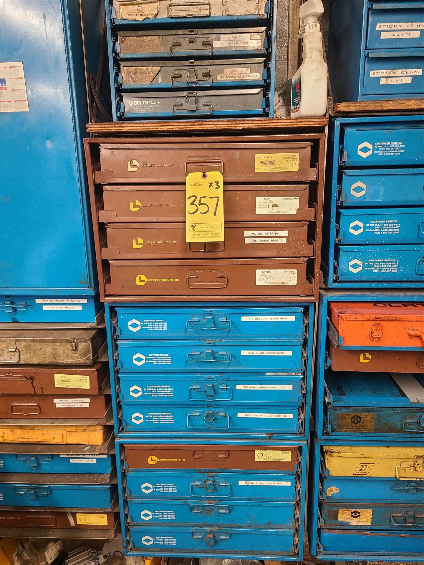 (3) small parts cabinets c/w contents: washers, cotter pins, retaining rings, etc. [Loc. Maint. Shop]