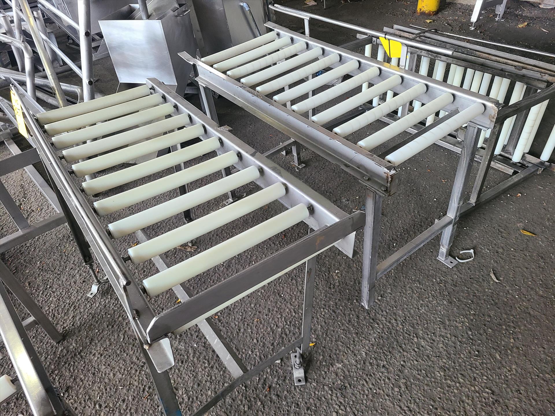 (5 sec.) roller conveyor, approx. 17 in. x 48 in. ea., stainless steel [Loc. Truck Bay]
