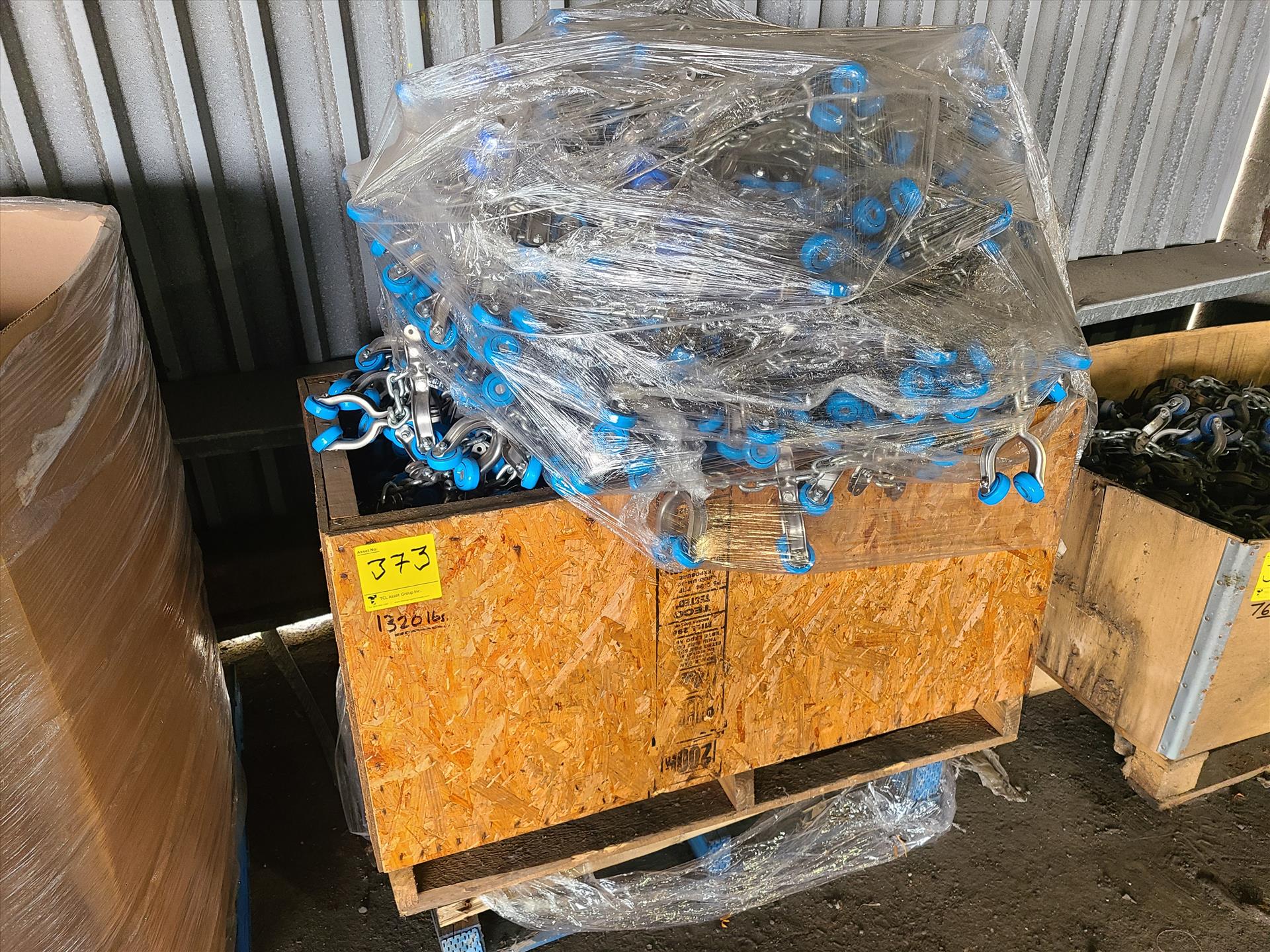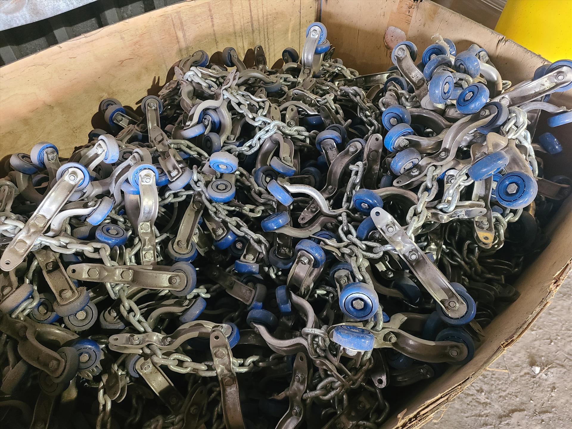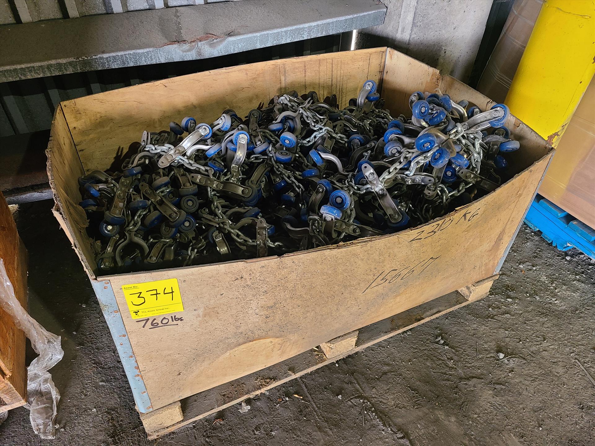 (approx. 5160 ft.) Evisceration trolley brackets-stainless steel, wheels and chain, approx. 2080 lbs. (incl. tar weight) (incl. lot 374) [Loc. Truck Bay]