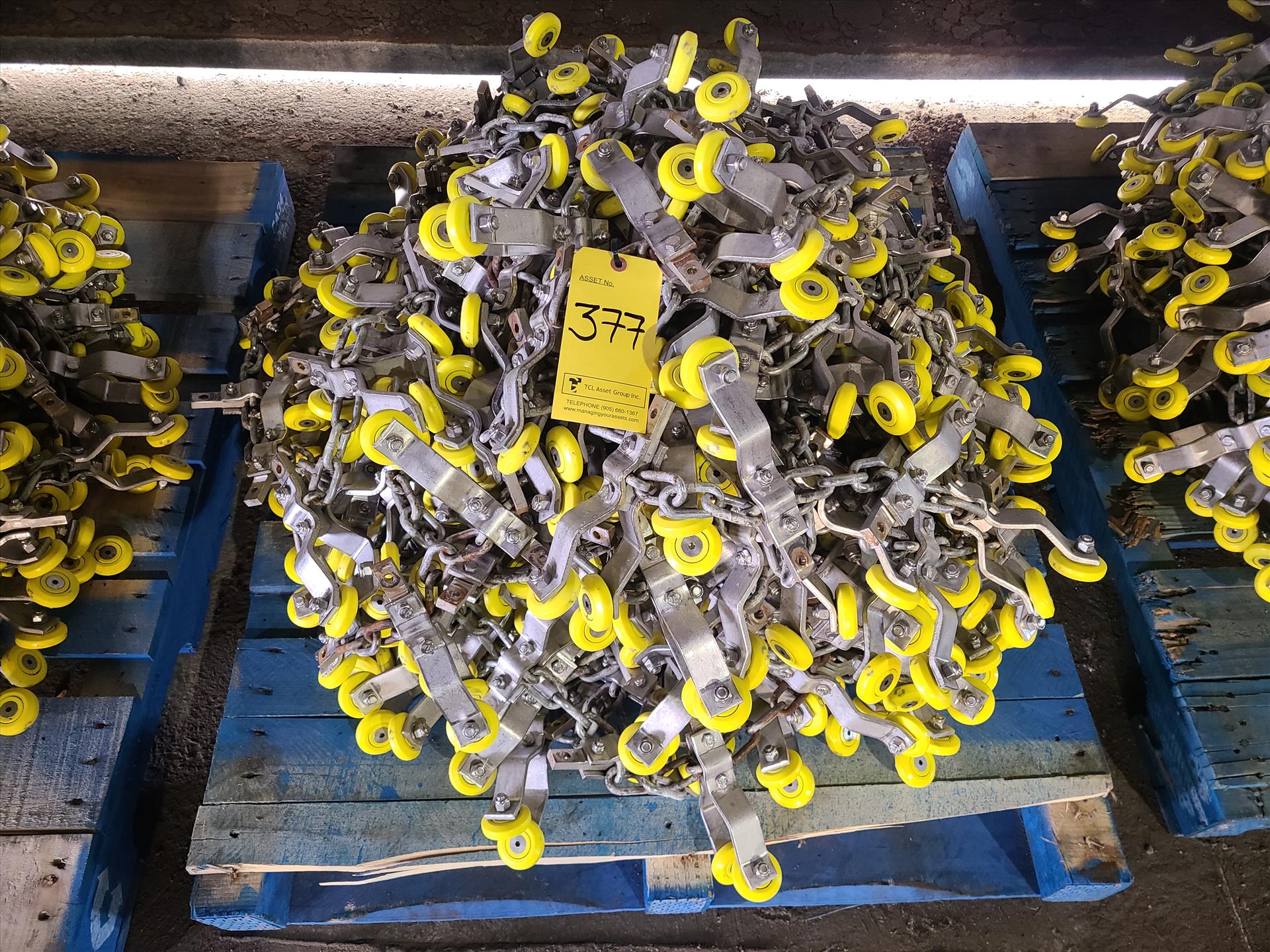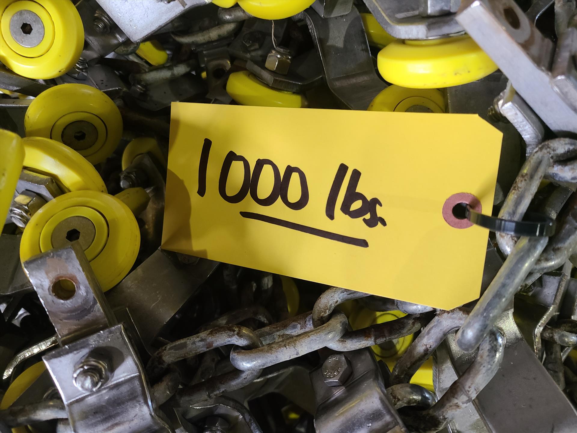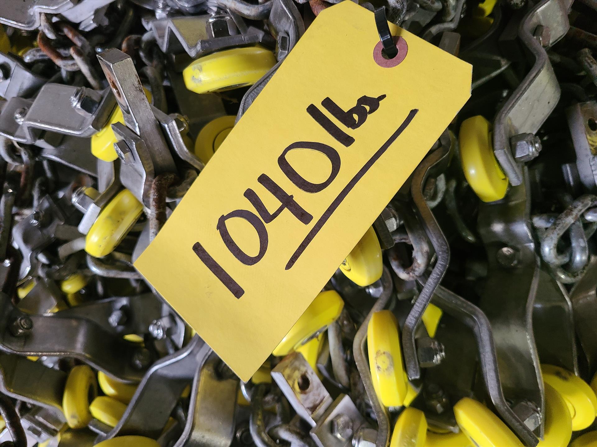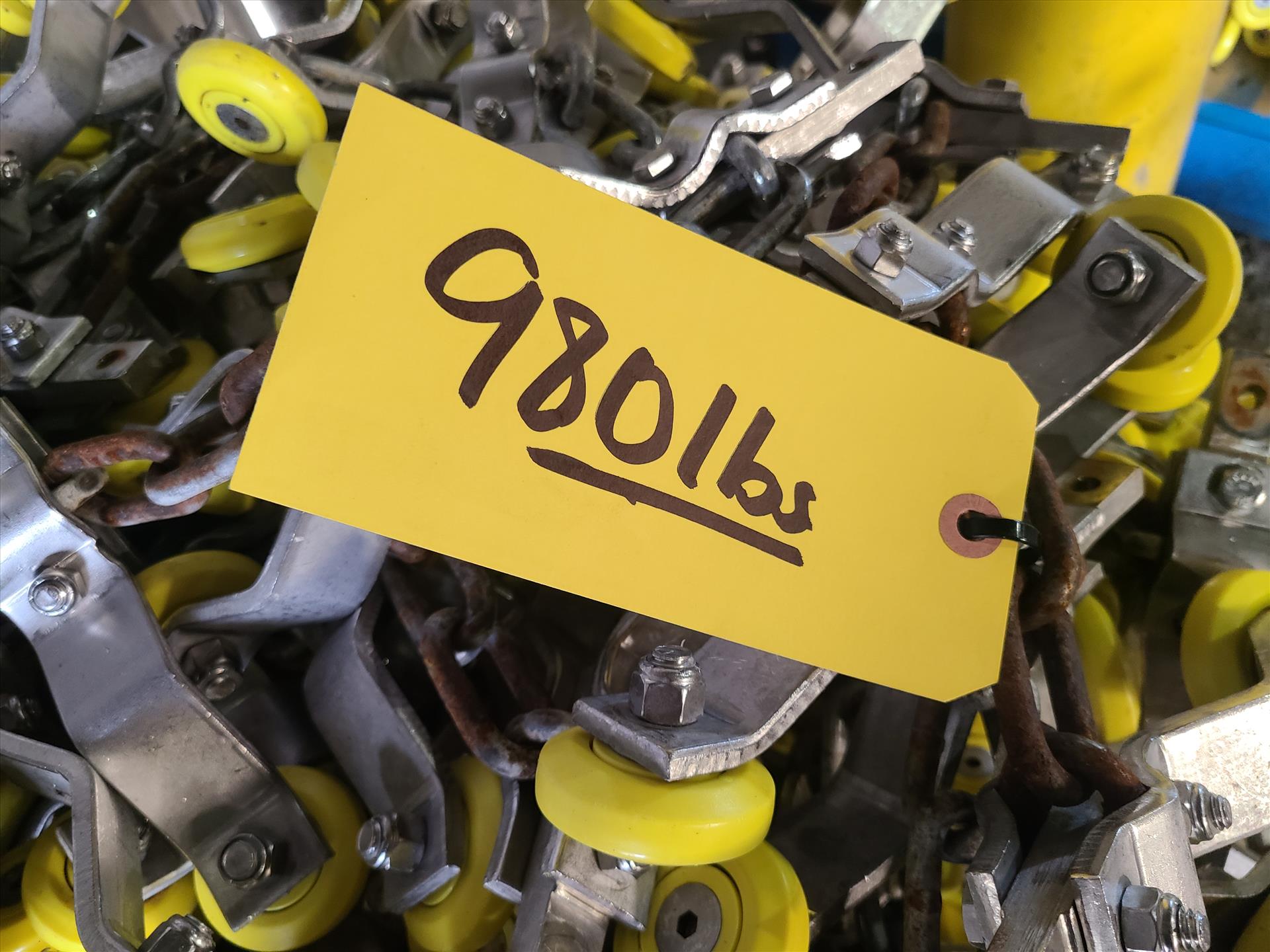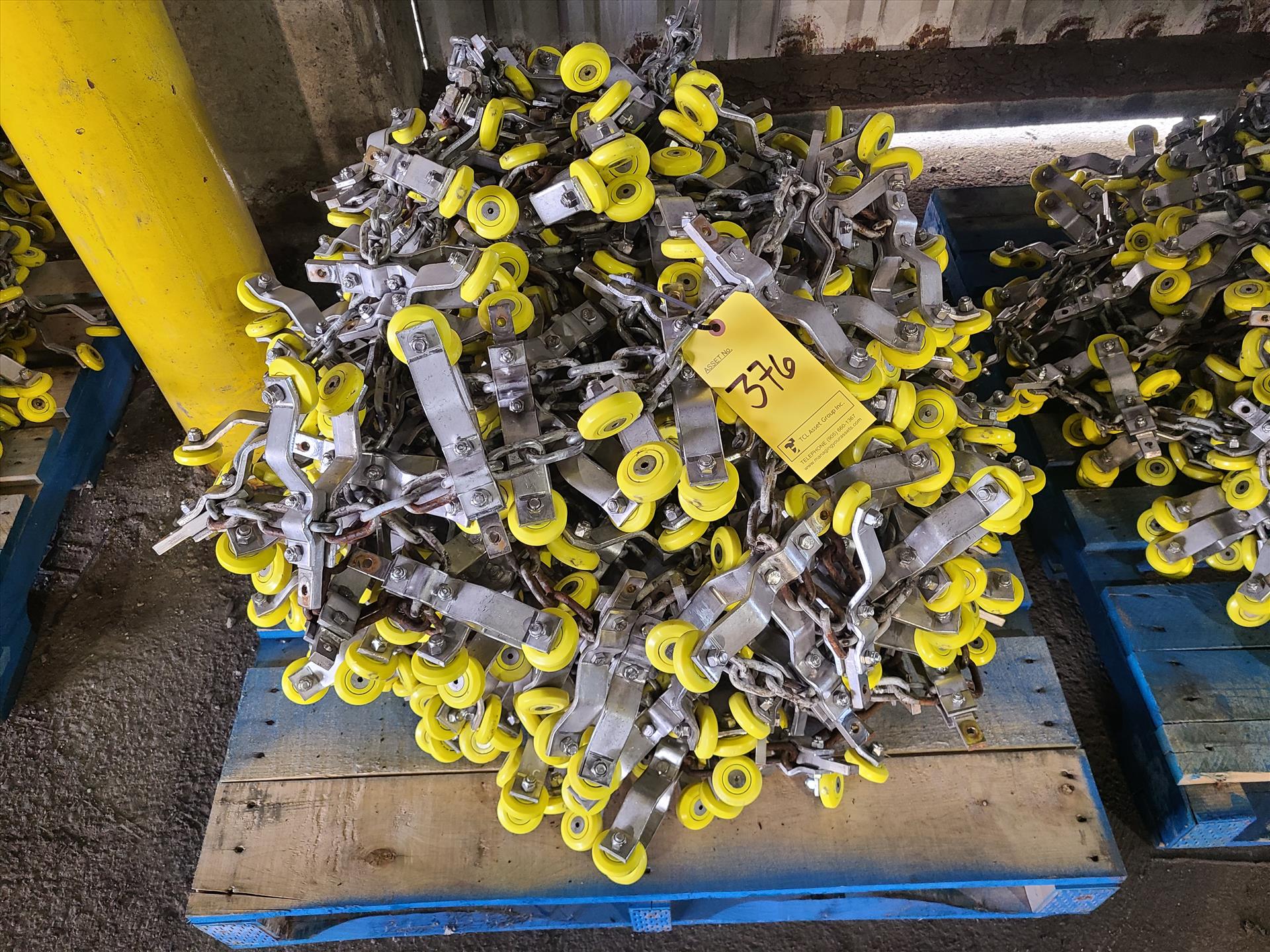 (approx. 10800 ft.) Live Receiving trolley brackets-stainless steel, wheels and chain, approx. 3860 lbs. (incl. tar weight) (incl. lots 376, 377, 378) [Loc. Truck Bay]