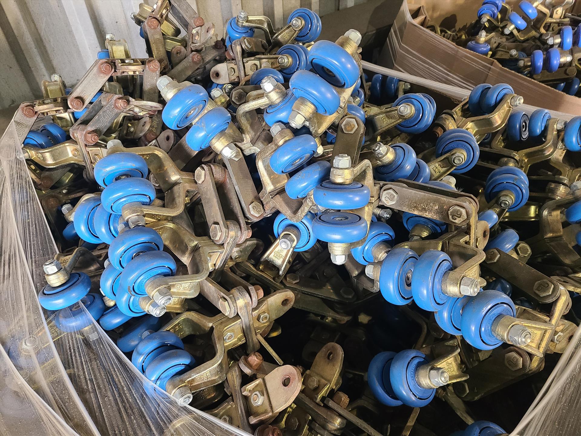 trolley brackets, wheels and chain, approx. 1620 lbs. (incl. tar weight) [Loc. Truck Bay]
