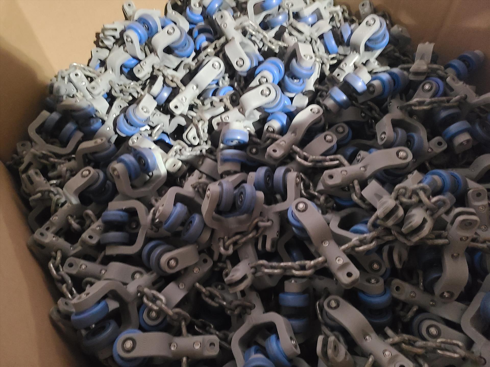 plastic shackles, trolley brackets, wheels and chain [Loc. Truck Bay]