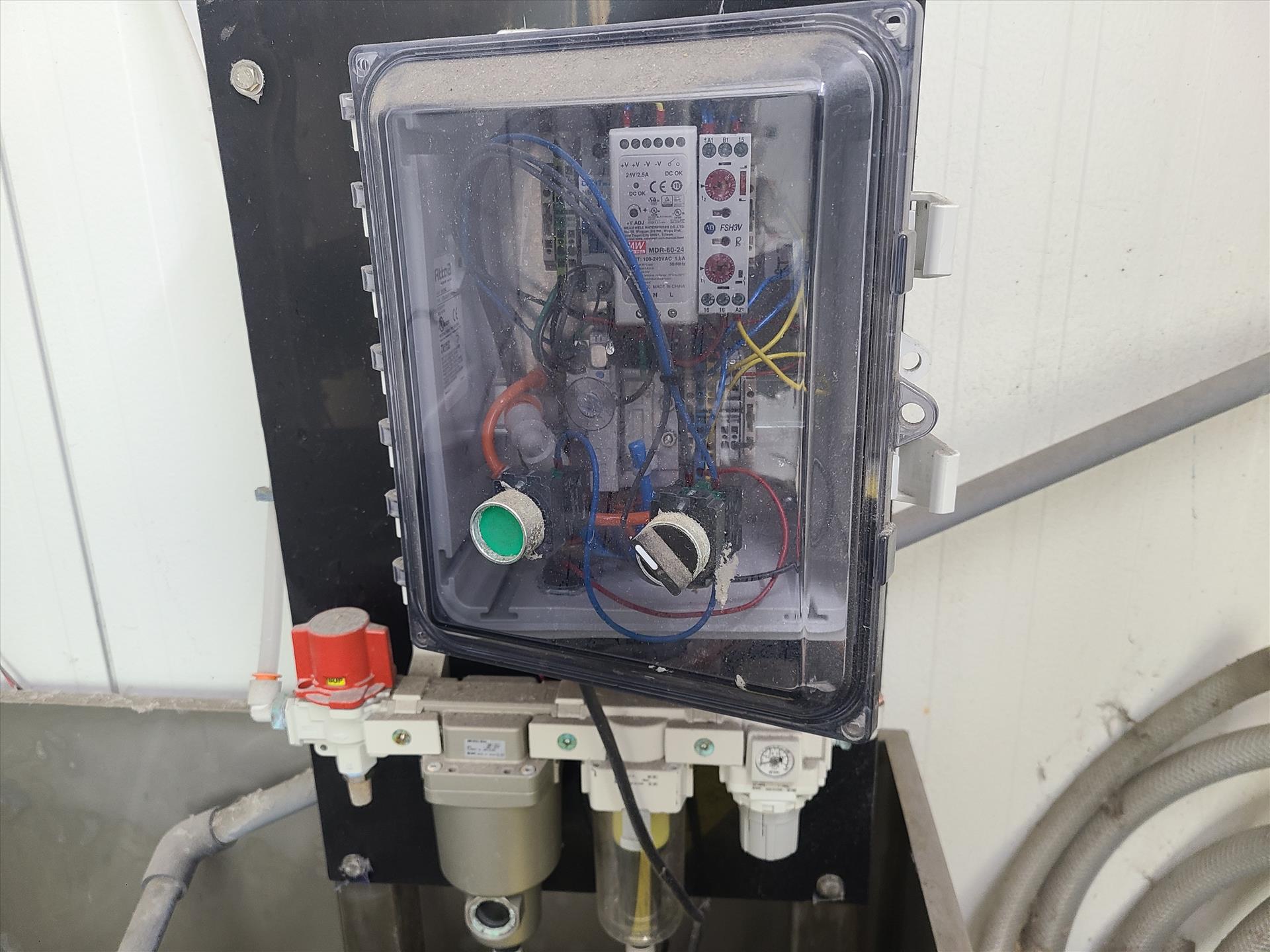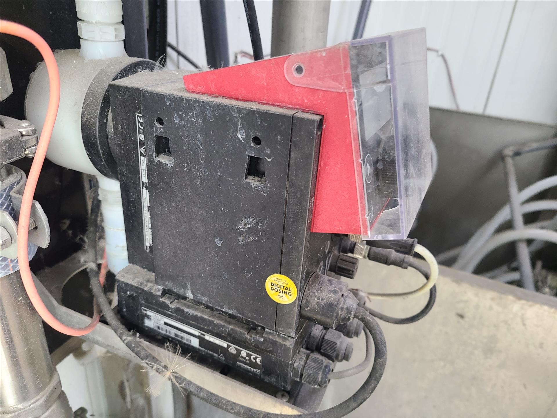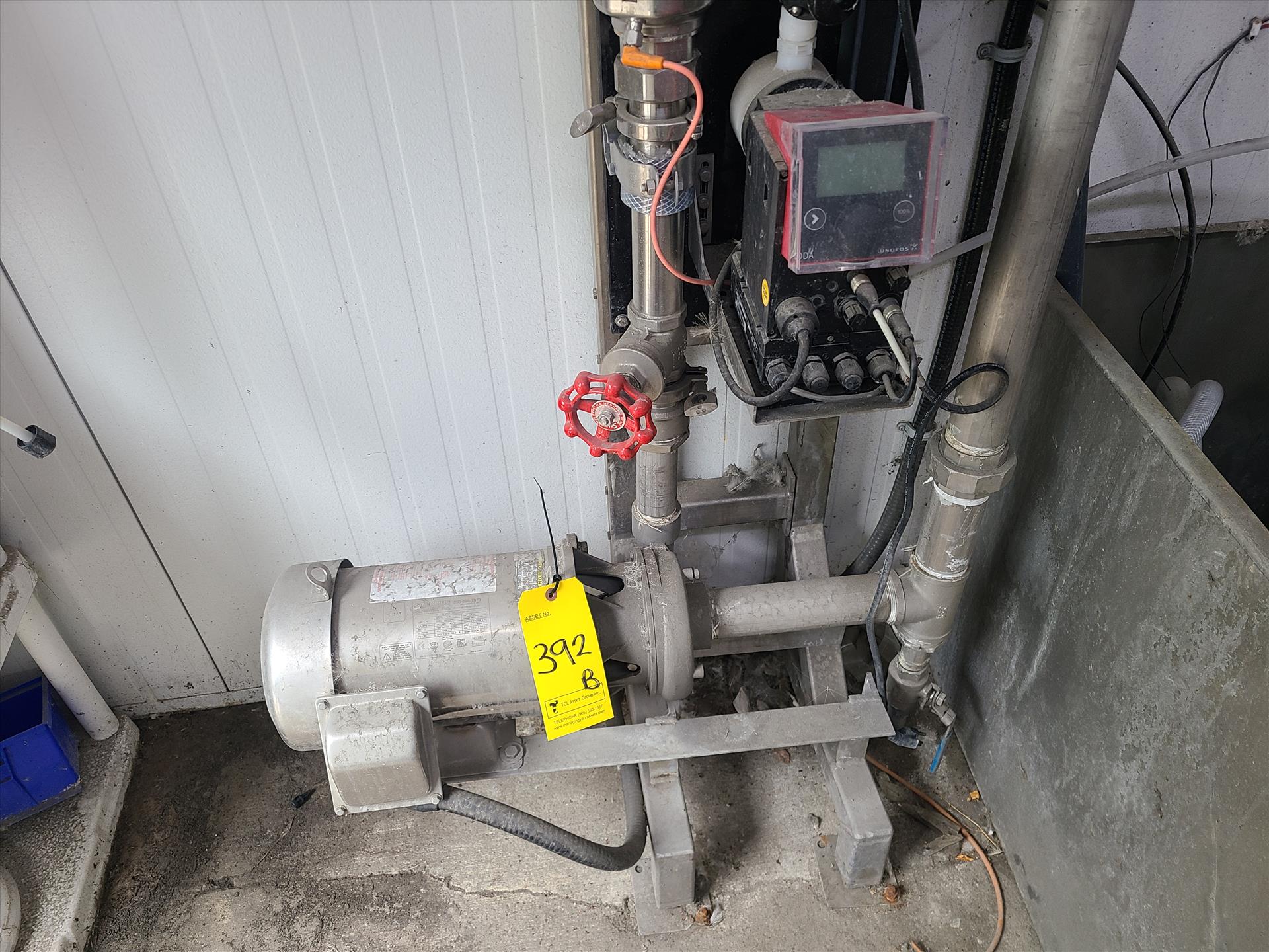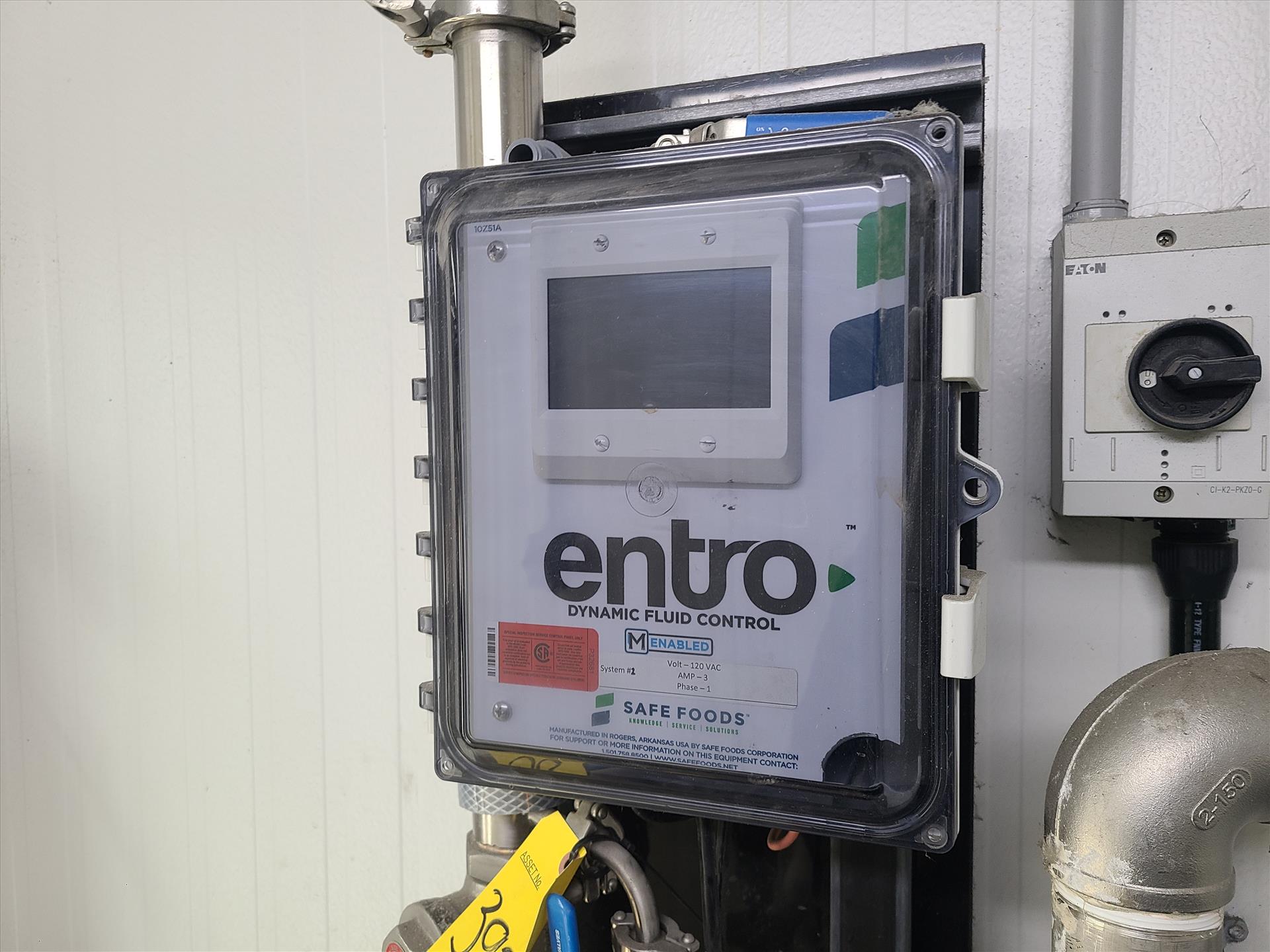 ph sanitization system including: grundfos digital dosing pump, yamada diaphragm pump, and safe foods entro dynamic fluid controller [Loc. Outside Truck Bay]