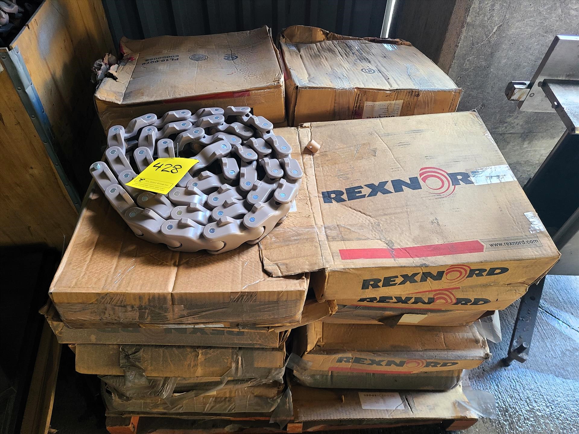 NEW and used Rexnord UniKing conveyor chain, mod. LF2500 c/w track [Loc. Truck Bay]