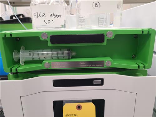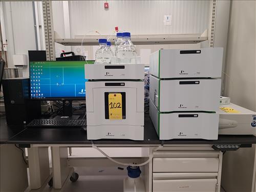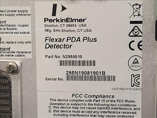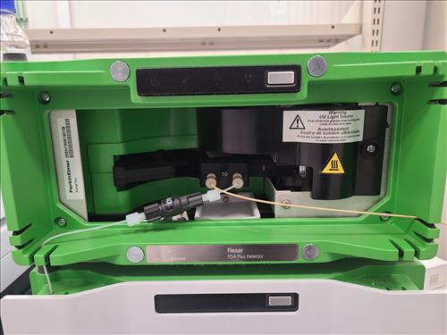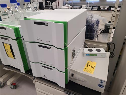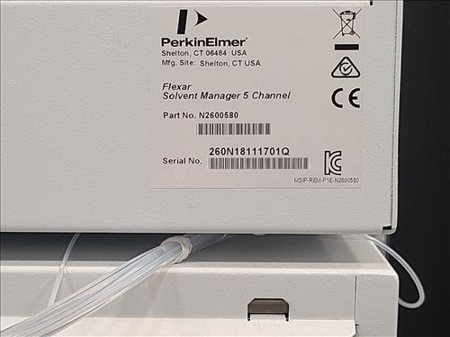 PerkinElmer Flexar HPLC system, incl.: PerkinElmer PDA Plus detector, mod. Flexar, s/n N2850010 w/ PerkinElmer column oven, mod. Flexar, s/n OVPF181213887 and PerkinElmer LC pump, mod. Flexar, s/n 291N18110803Q and PerkinElmer LC autosampler, mod. Flexar Peltier LC, s/n 293H8113002A (2018) and PerkinElmer 5-channel solvent manager, mod. Flexar, s/n 260N1811701Q c/w Dell Optiplex 3050 I5 desktop, software, Ametek Powervar 12 battery back-up