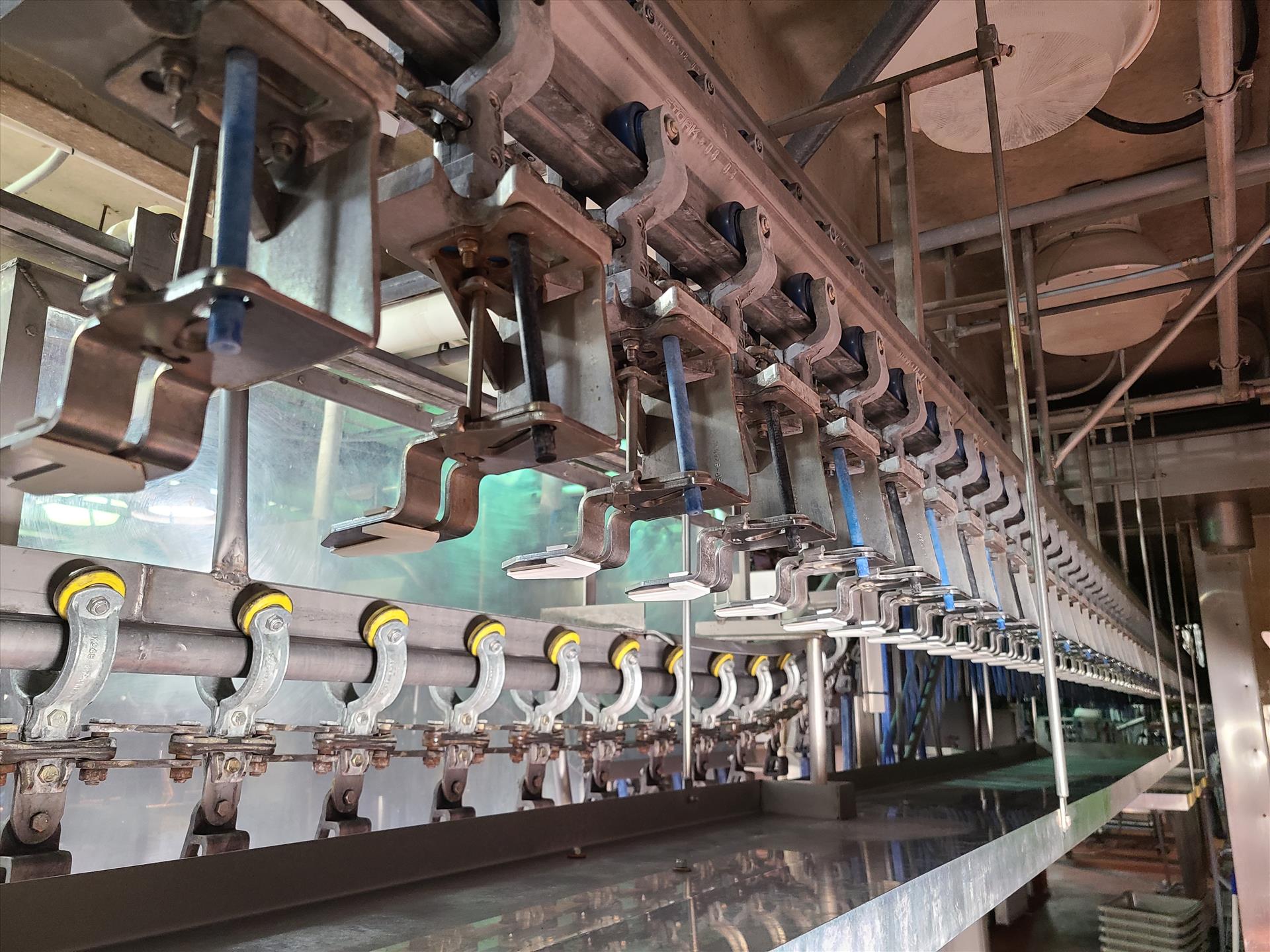 Pack overhead conveyor w/ stainless steel shackles at 6 in. approx. 320 ft. long [Evisceration 1]