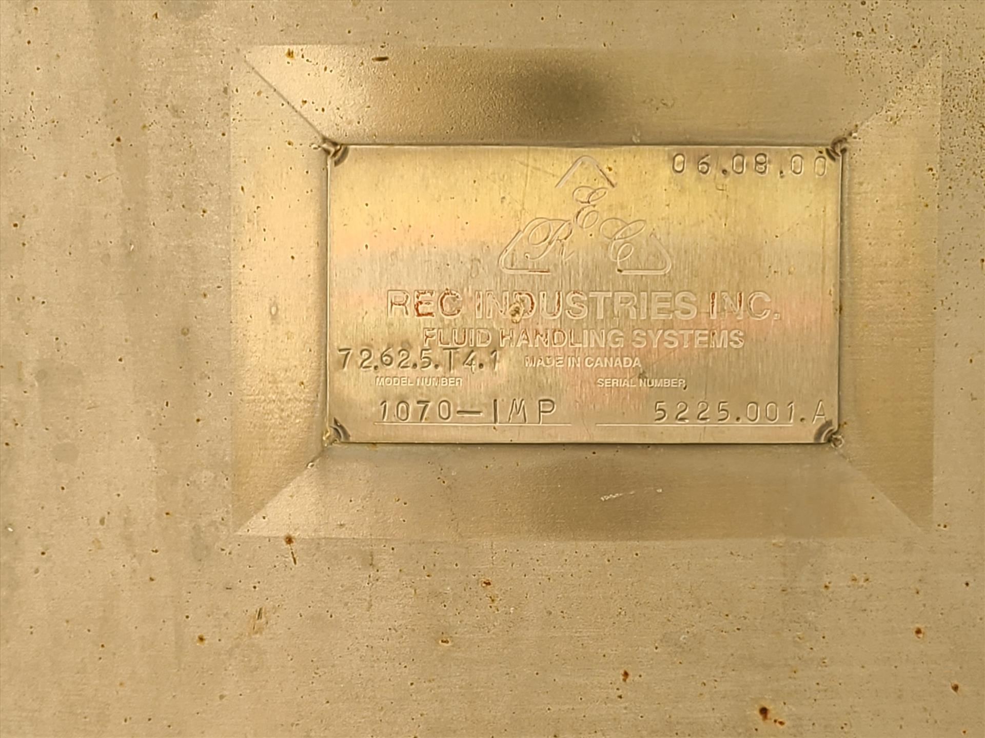 REC Ind. Tank, mod. 1070-IMP, ser. no. 5225.001.A, stainless steel, approx. 6 ft. dia. X 64 in., open top [Offal]