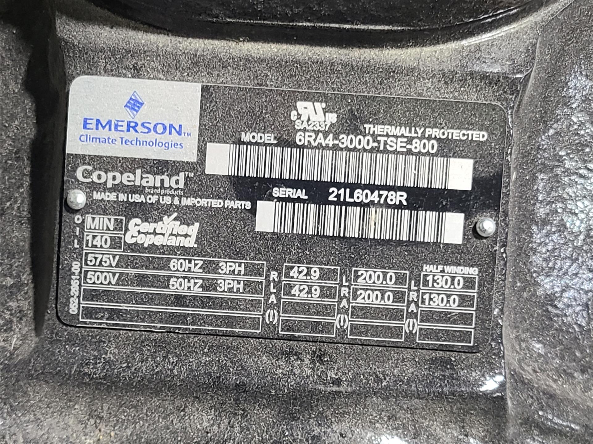 (spare) Emerson ammonia compressor, mod. 6RA4-3000-TSE-800, ser. no. 21L60478R [Refrigeration Area]