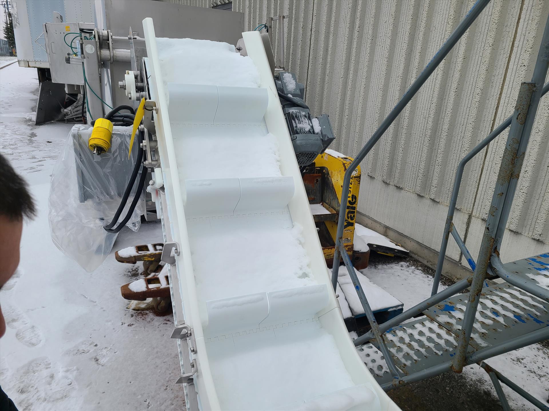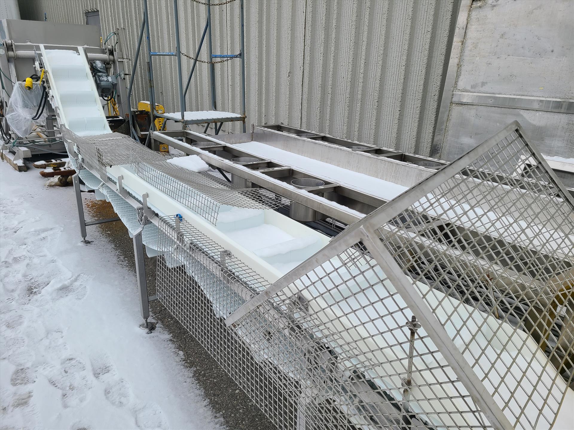 discharge conveyor, approx. 16 ft. x 12 in. stainless steel frame [MLF Bradford Plant - 65 Reagens Industrial Pkwy, Bradford, ON]