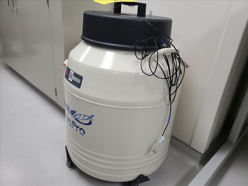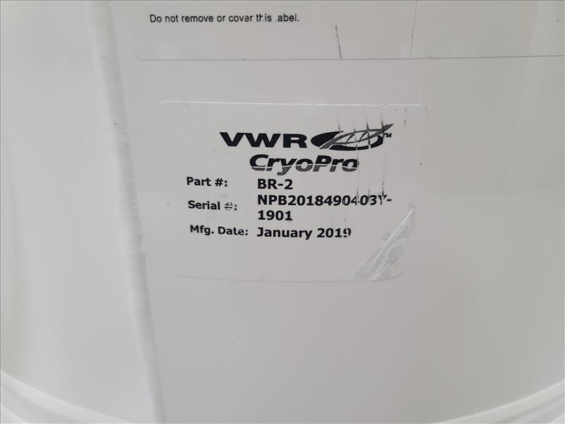 VWR liquid nitrogen dewar, mod. CryoPro BR-2, ser. no. NPB2018490403Y-1901 (2019) w/ sample racks