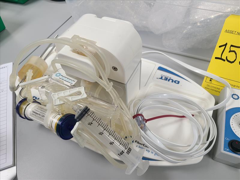 FiberCell Sys. pump, mod. Duet P3202 w/ flow controller c/w misc. hollow fiber bioreactors