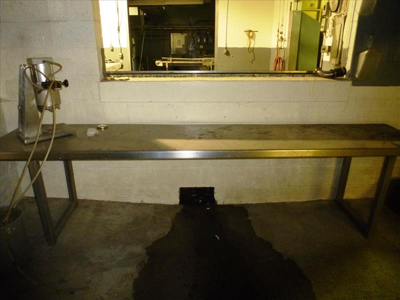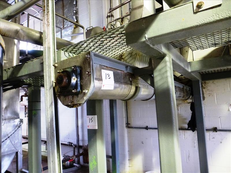 s/s screw conveyor. REQUIRED REPAIRS TO WALL ARE THE RESPONSIBILITY OF THE BUYER. PLEASE HAVE YOUR MACHINERY MOVER INCLUDE THESE REPAIRS IN THIER QUOTE