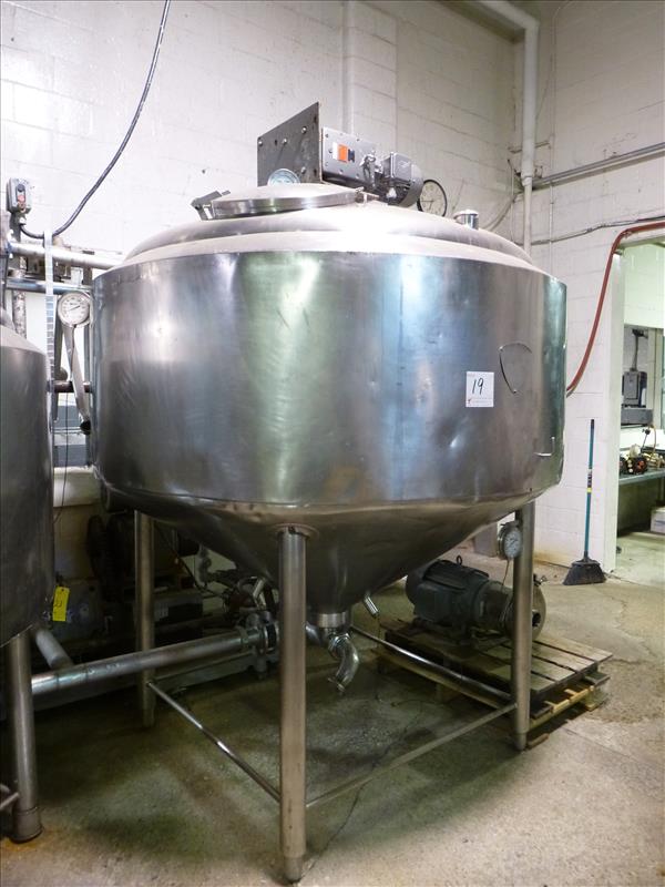 Creamery Package s/s steam-jacketed dome-top processor kettle, ser. no. P500.8743, 500 USG., 50 PSIG. jacket, cone bottom c/w s/s sweep agitator