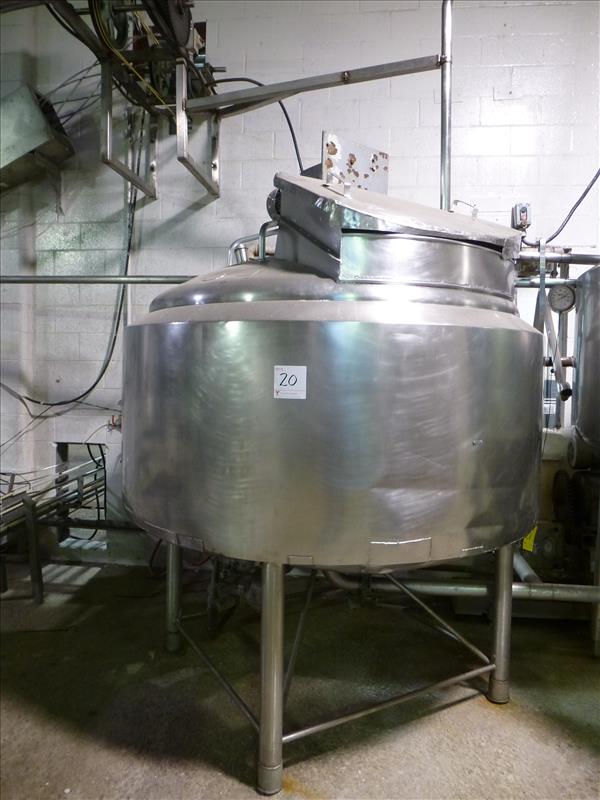 Crepaco s/s steam-jacketed dome-top processor kettle, ser. no. 0333, 75 PSIG. jacket, cone bottom c/w s/s sweep agitator, mod. CCA