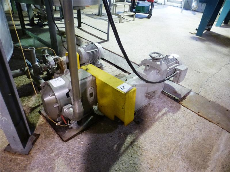 Waukesha s/s positive displacement pump, mod. 180-U2, ser. no. 238198-99 with 15 h.p. Eurodrive VSD, mod. R80, ser. no. 80.13.04836.2/1