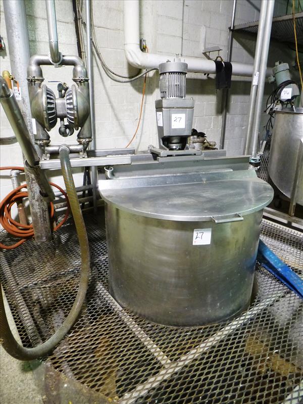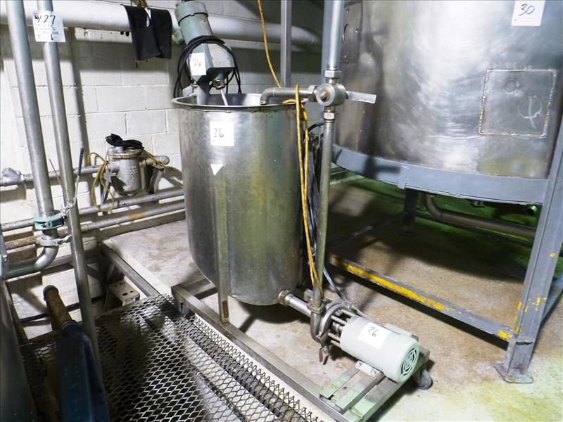 s/s open-top portable mixing tank, approx. 24" diam. x 34" high c/w Ladish mod. C216MD56T, 1.5 h.p. s/s centrifugal pump, ser. no. 7141, Lightnin edge-mounted mixer, mod. XJ-43, ser. no. 8805 & cart