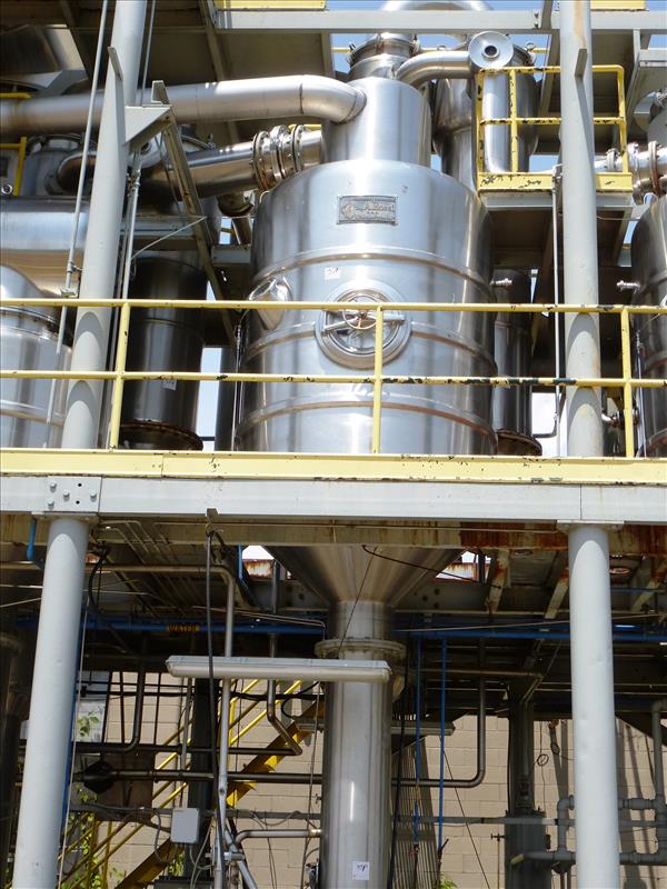 3rd. effect s/s vapor head, approx. 5' diam. plus cone bottom & 4th. effect s/s vapor head, approx. 4' diam. plus cone bottom & 3rd. & 4th. effect s/s separator drum, approx. 3' diam. x 9'9" long & 1-11/16" triangular C/C, 8' long, approx. area = 917 sq. ft. (specs. not verified) & 1-11/16" triangular C/C, 8' long, approx. area = 917 sq. ft. (specs. not verified) 3rd. effect s/s heat exchanger No.2, approx. 156 tubes, 1-1/4" diam. on 1-1/2" triangular C/C, 14'6" long, approx. area = 740 sq. ft. (specs. not verified) & 4th effect s/s heat exchanger, 9'10" long, 18" shell diam., approx. area = 330 sq. ft. (specs. not verified). THE INDIVIDUAL BID WILL BE OFFERED CONDITIONAL SUBJECT TO THE BULK BID LOT & AWARDED SOLD INDIVIDUAL OR BULK WITHIN 24 HOURS OF AUCTION CLOSE.