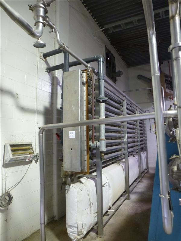Esco Engineering designed, custom-built s/s aseptic tube-in-tube sterilization-cooler, approx. 4" outer tube, 2" inner tube, 20' long, approx. 1,000' continuous pipe c/w ABB Commander 1900 chart recorder & controller (specs. not verified). THE INDIVIDUAL BID WILL BE OFFERED CONDITIONAL SUBJECT TO THE BULK BID LOT & AWARDED SOLD INDIVIDUAL OR BULK WITHIN 24 HOURS OF AUCTION CLOSE.