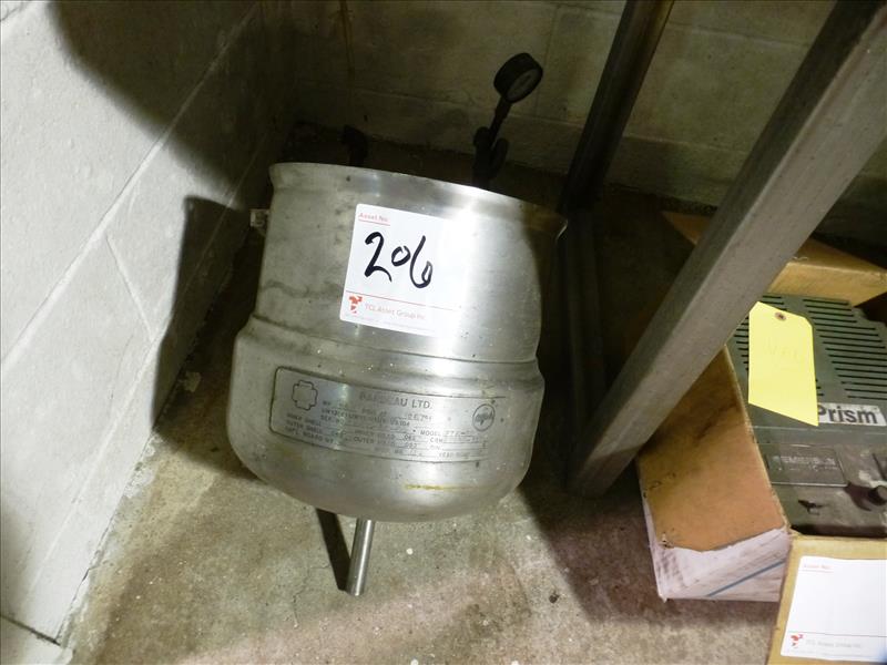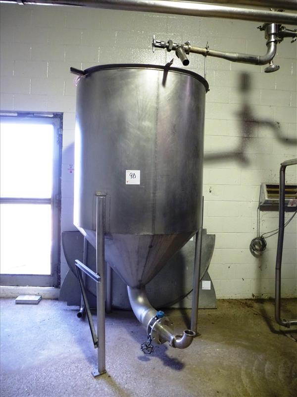 s/s sterilizer tank, approx. 48" diam. x 48" high straight side c/w cone bottom & s/s legs. THE INDIVIDUAL BID WILL BE OFFERED CONDITIONAL SUBJECT TO THE BULK BID LOT & AWARDED SOLD INDIVIDUAL OR BULK WITHIN 24 HOURS OF AUCTION CLOSE.
