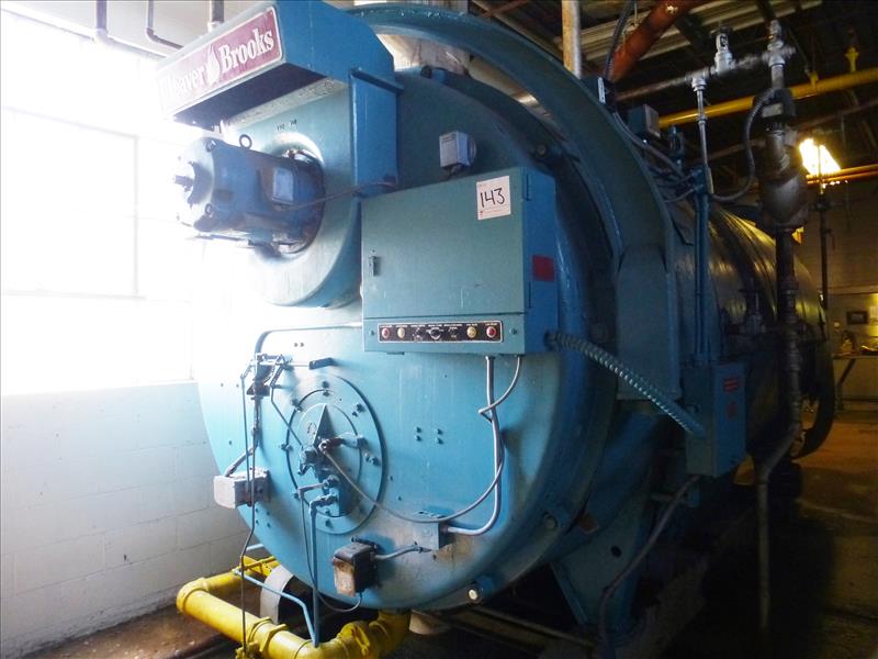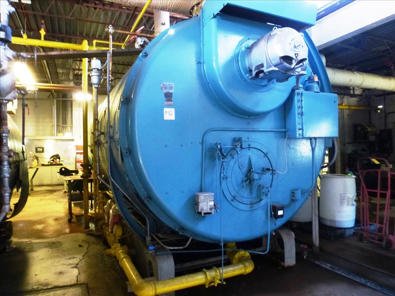 Cleaver Brooks natural gas-fired steam boiler, mod. CB648-600, ser. no. S-25592, 200 psi. c/w Fireye flame monitor. ITEM TO BE DISCONNECTED AT STACK. STACK TO REMAIN IN CEILING.