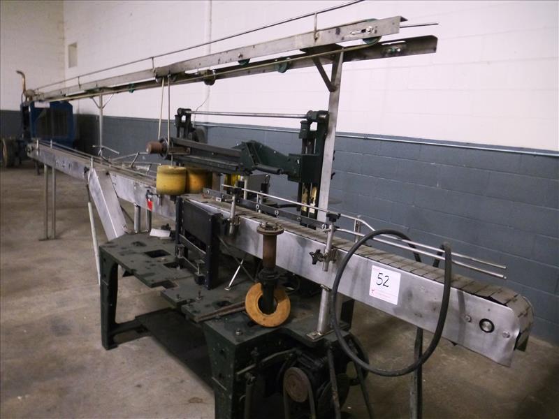 Glass Jar and Small Can Filling Line, incl.: (1) Pfaudler 6-pocket rotary piston filler, mod. 6, ser. no. 53721 & (1) turntable de-scrambler, 40" diam. & (1) 4.5" W. slat belt conveyor c/w jar inverter & air blow-out & (1) glass jar washer conveyor c/w approx. 4" W. x 23' L. s/s slat conveyor & s/s steam tunnel/washer & (1) lot of various can inverters