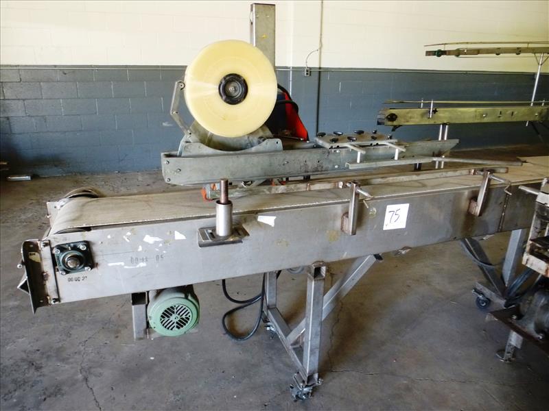 Auto Labe labeller mod. 110LH, ser. no. 941053 c/w World Compact C.M. labeller, ser. no. 1RL78 & approx. 4.5" W. x 20' L. plastic slat belt conveyor