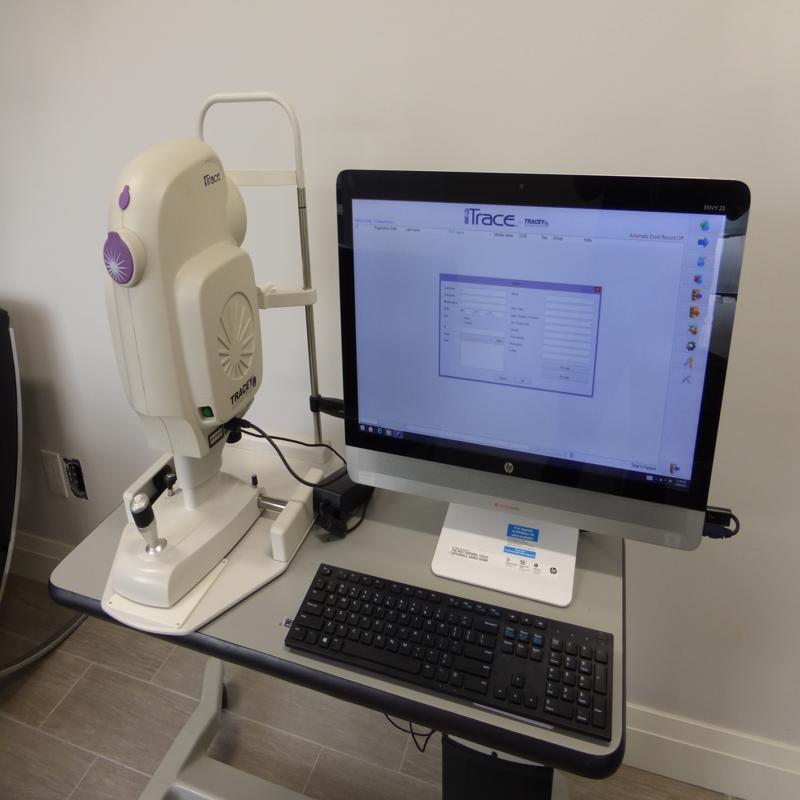 Tracey Technologies ray-tracing wavefront aberrometry, model iTrace WSL524M, s/n 3623?w/ HP standalone Panel Pc w/ intel i5 model 23-014 s/n 8CC5240MVJ (table sold separately as Lot 24B)