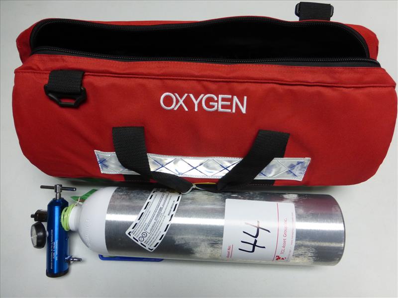 Amvex oxygen tank with O2 regulator and duffle bag s/n GRACU00204LL