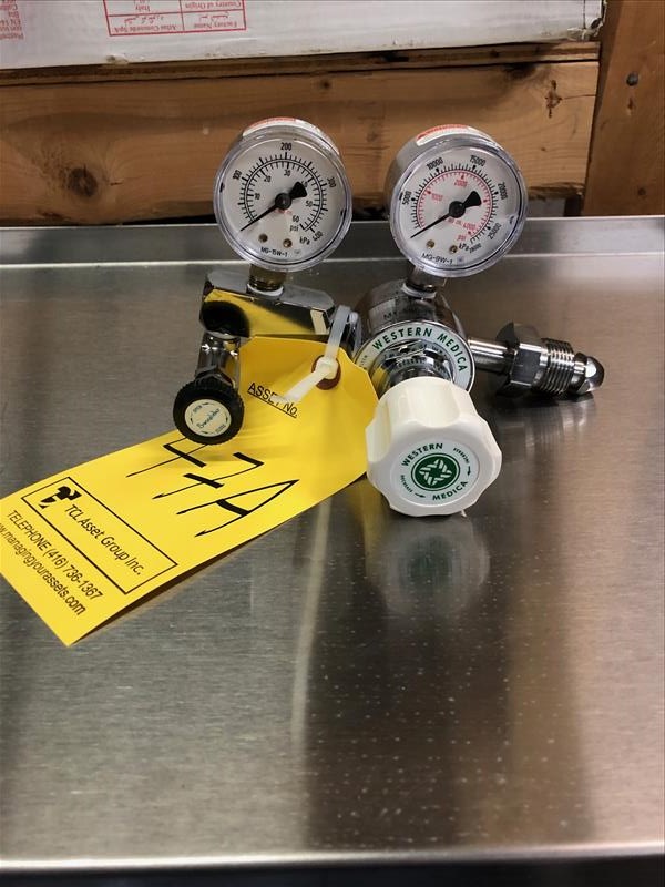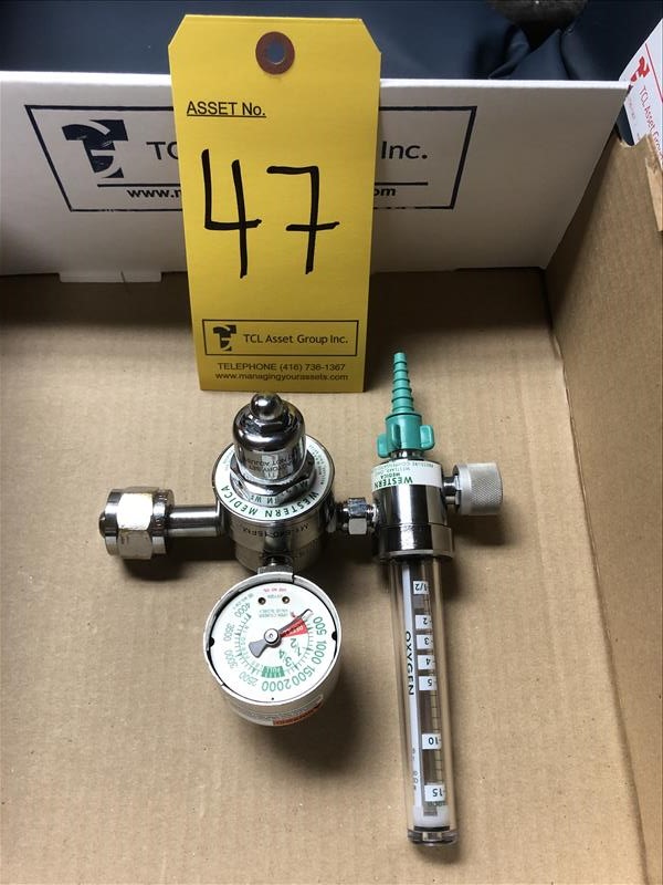 Western Medica medical oxygen compressed gas regulator with pressure compensated flowmeter s/n M211490-1300009