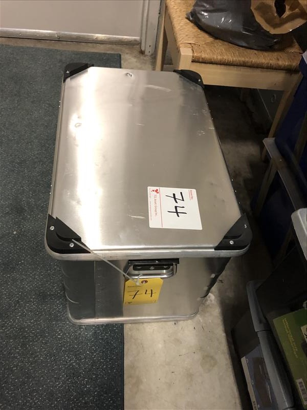 Stainless steel storage trunk, 23 in L by 15 inches W by 16.5 in H
